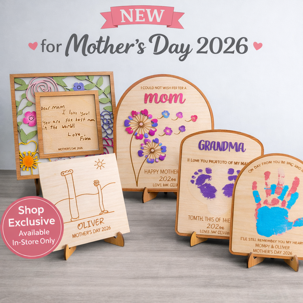 More than a gift, these new handcrafted designs create a memory you’ll make together. Add your child’s handprints, footprints, or fingerprints at home to create a one-of-a-kind keepsake Mom, Grandma, or Nana will treasure forever.