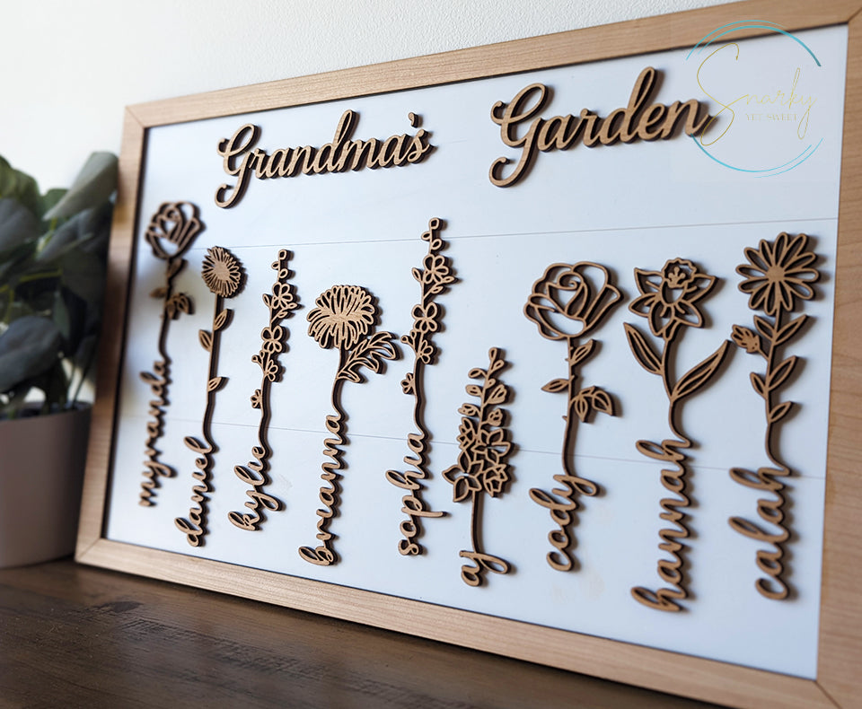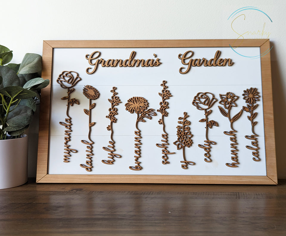 Birth month flower sign, Grandma's garden sign, mom garden sign, grandkid name sign, Mother's Day gift