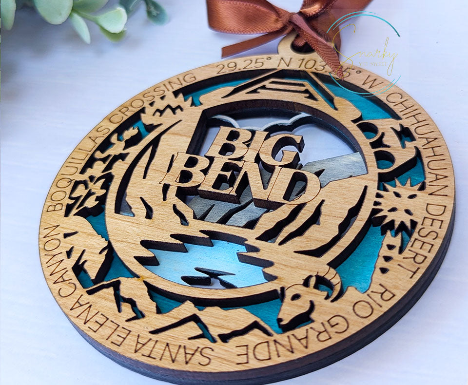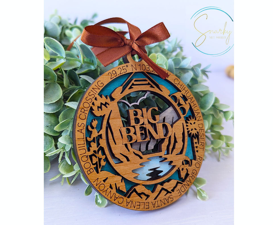 Relive your favorite trip to Big Bend National Park with this beautiful handmade wood ornament. Ornaments are hand painted with details from the park and a gorgeous laser cut and engraved cherry wood that features many icons specific to Big Bend and words and phrases for that park. These ornaments are great reminders of your favorite family vacation or hiking adventure and make great gifts for the avid hiker or adventurer in your life.