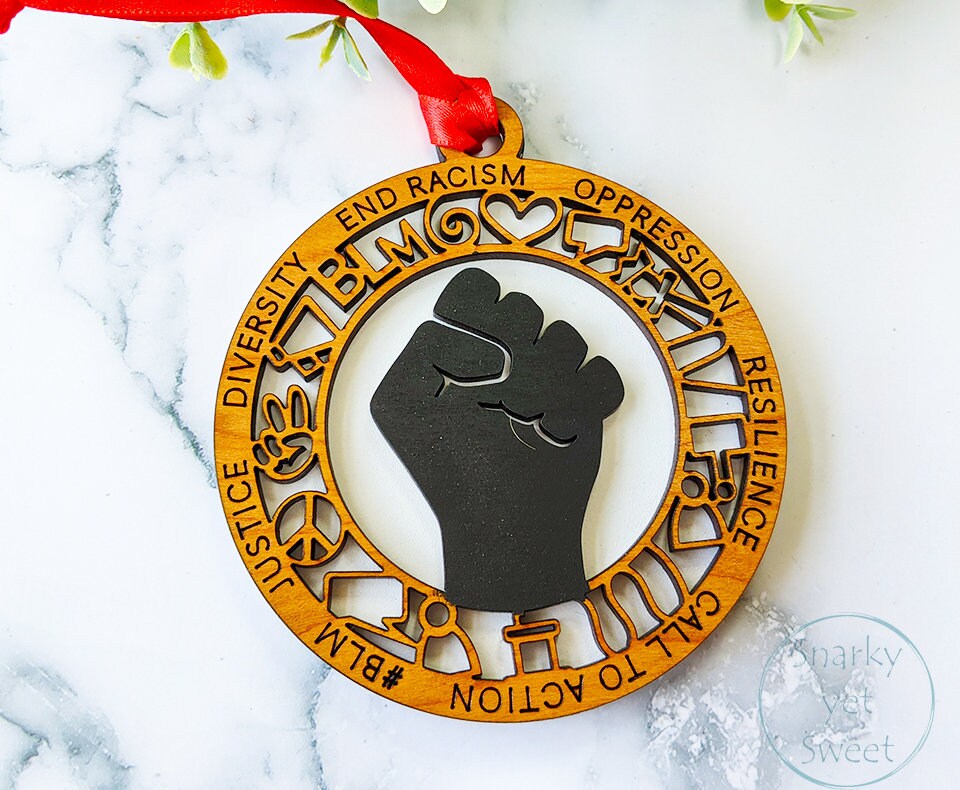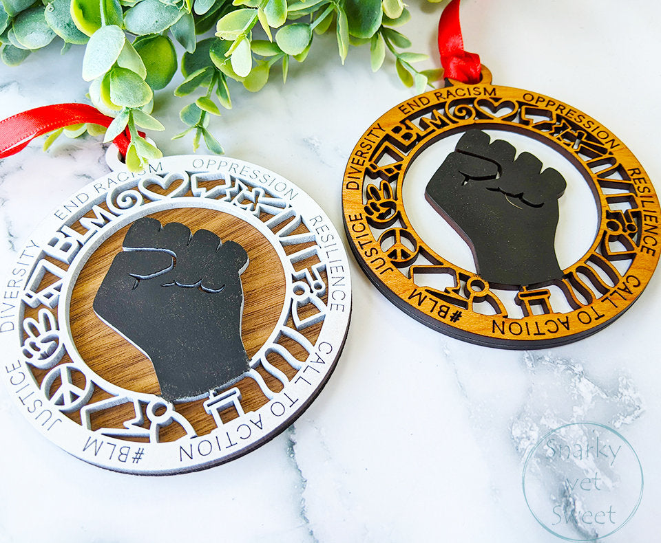 BLM layered ornament, black lives matter ornament, blm ornament, personalized ornament, unique wood ornament, laser cut ornament