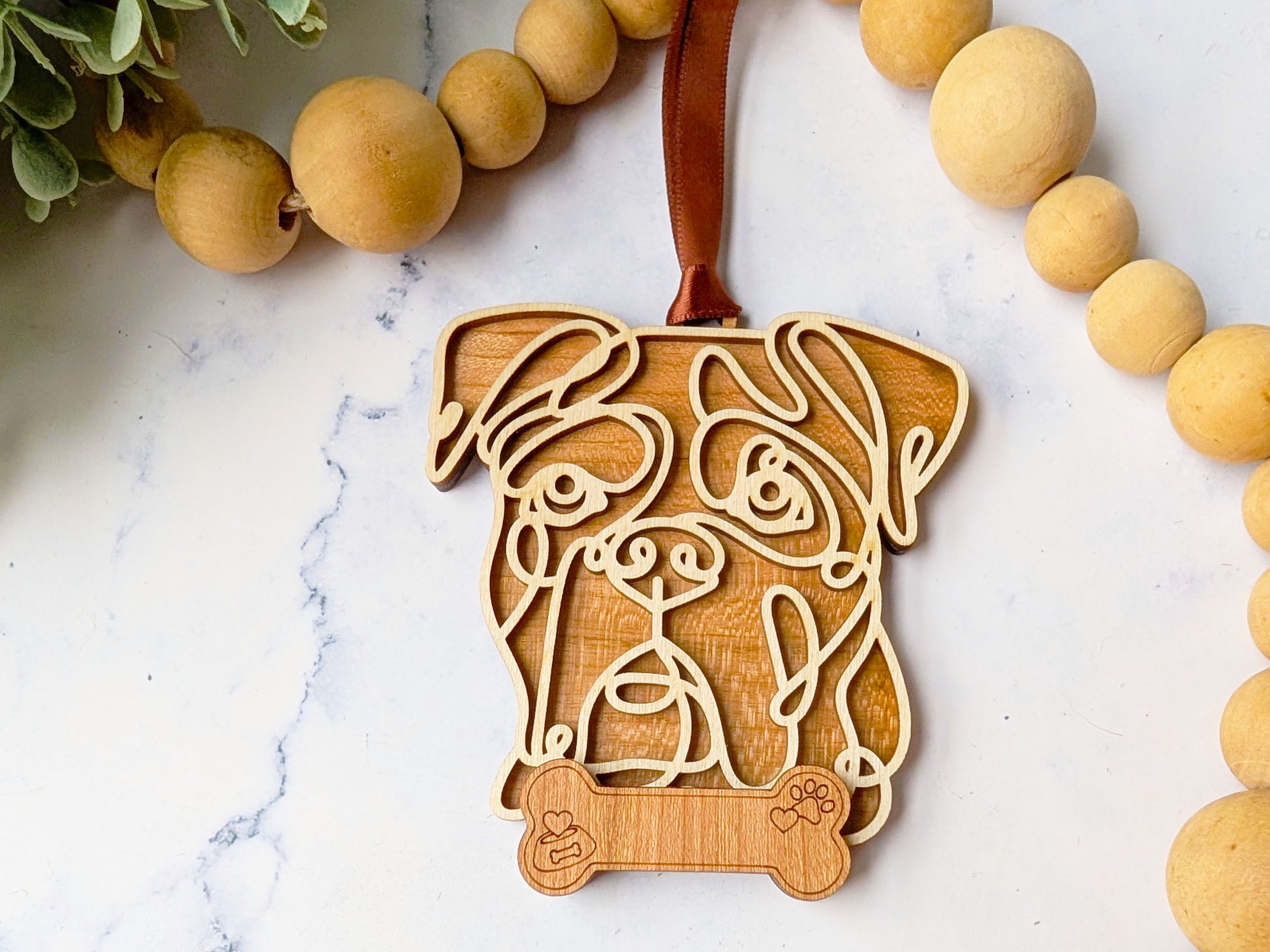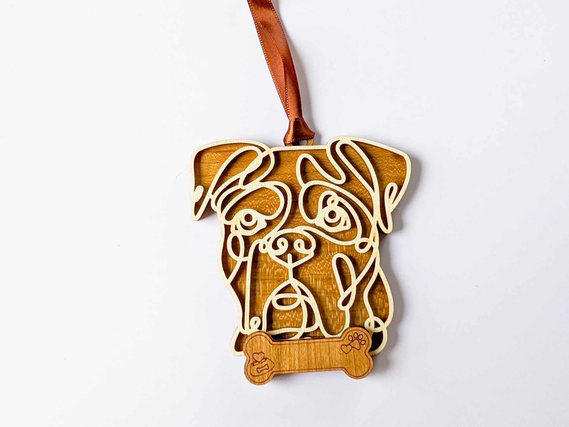 Celebrate your favorite furry friend with this handcrafted wooden dog ornament. Each piece features an intricately layered design that captures your pup’s personality in warm cherry and birch woods. Whether displayed year-round or hung proudly during the holidays, these keepsakes make a heartfelt gift for pet lovers and proud dog parents alike.