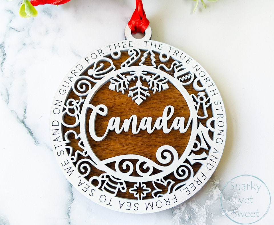 Canada layered ornament, Canada ornament, country ornament, personalized ornament, unique wood ornament, laser cut ornament