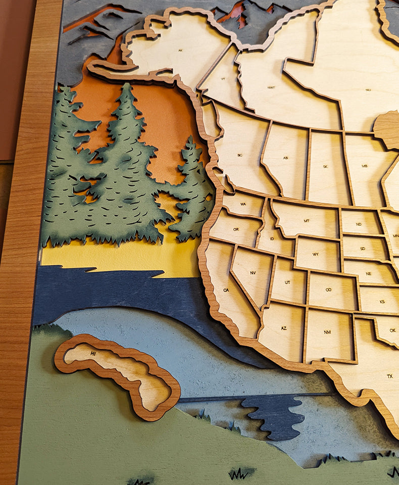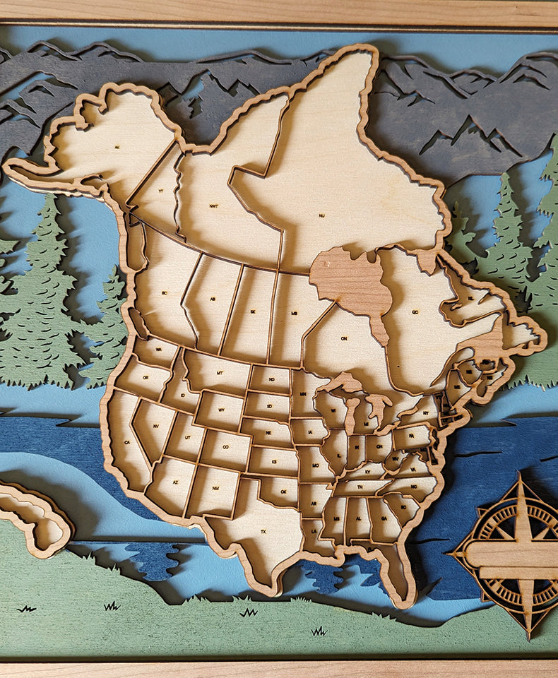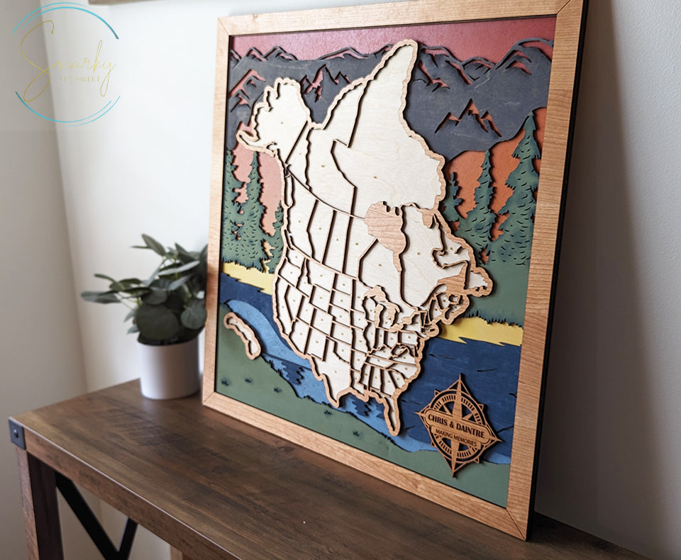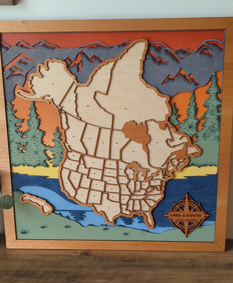 This unique map is for those that want to track their travels across all of the US and Canada. Insert the states and provinces that you have visited with this impressive display! Map includes cut outs for all US states as well as all Canadian provinces to be one truly unique gift for yourself or other avid travelers.