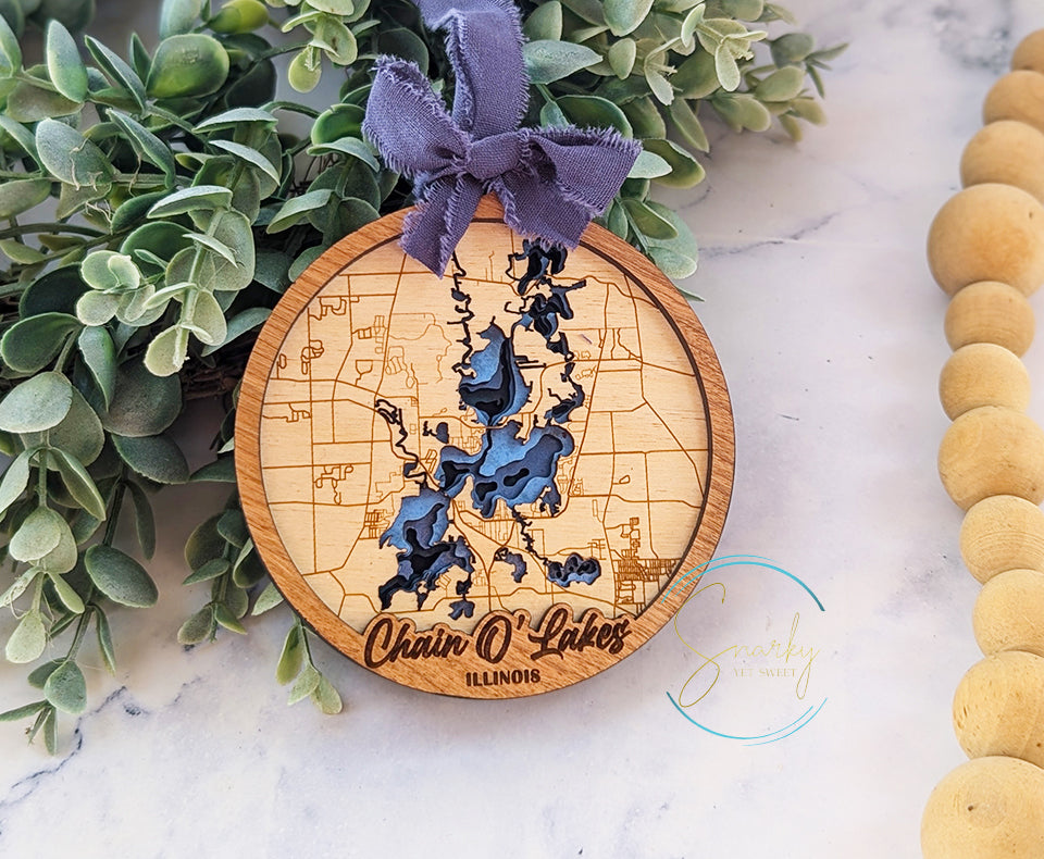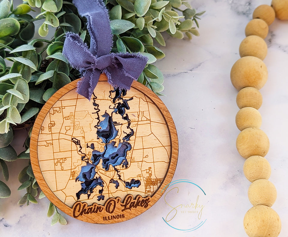 Each lake depth ornament is handcrafted in our Woodstock, Illinois workshop by our small family team. When you purchase from Snarky Yet Sweet, you're supporting a small business dedicated to creating meaningful keepsakes that celebrate the places you love.