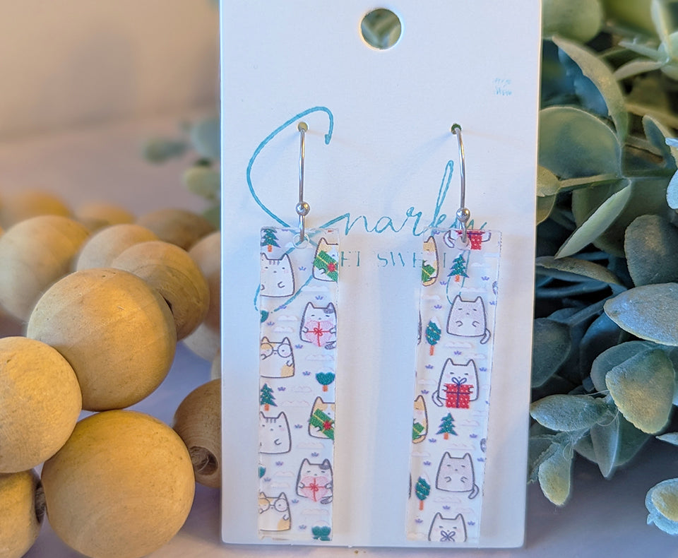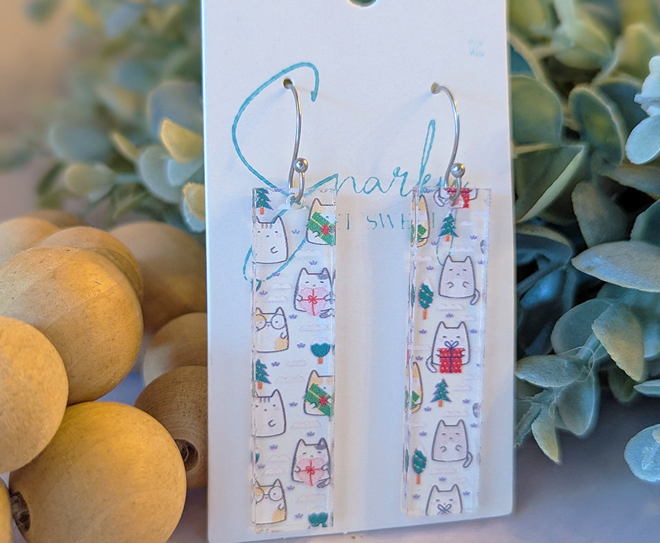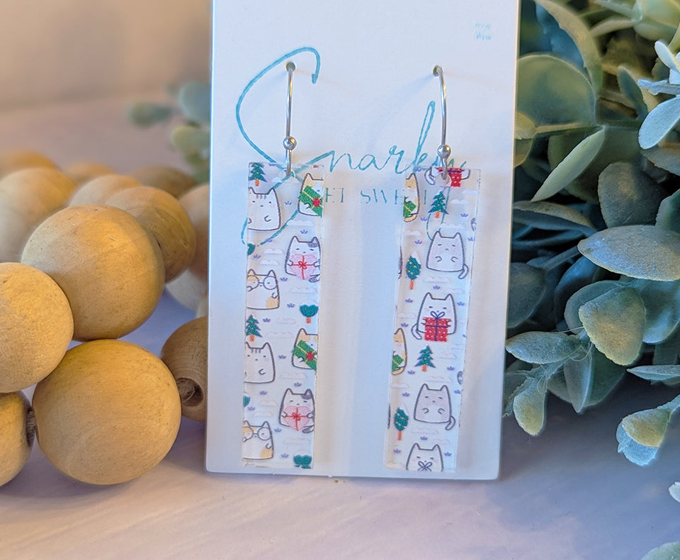 Cat earrings, cute cat earring, Christmas earring, acrylic earrings, printed earrings, lightweight earrings, everyday earring, gift for her
