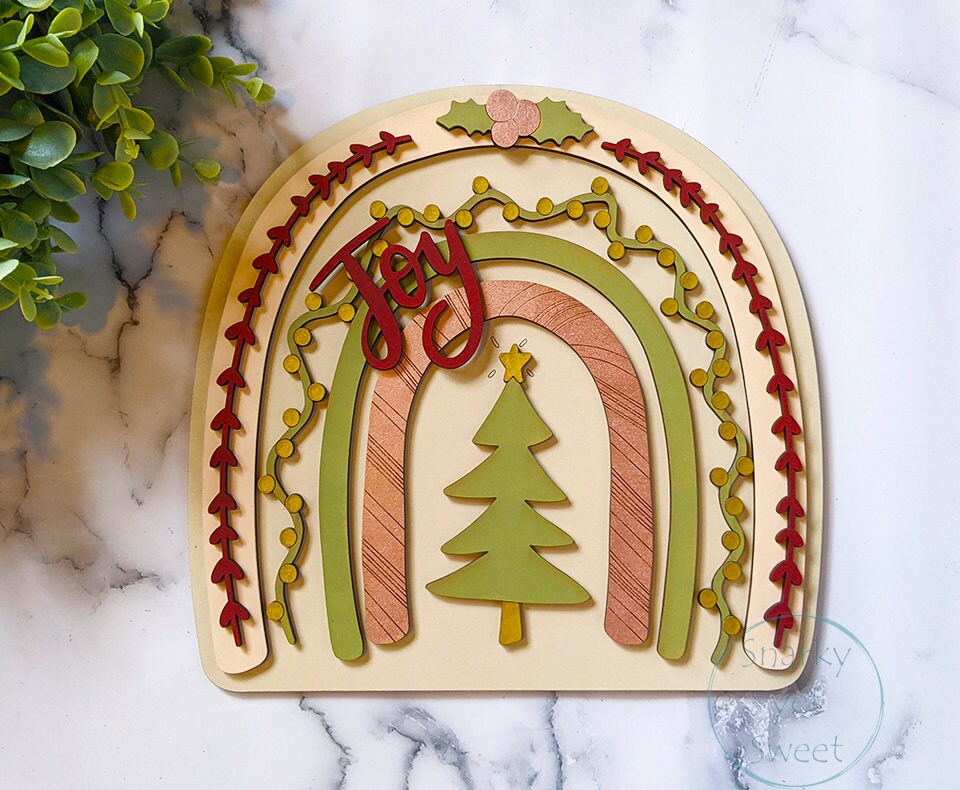 Christmas Boho Rainbow Wooden Tabletop Decor