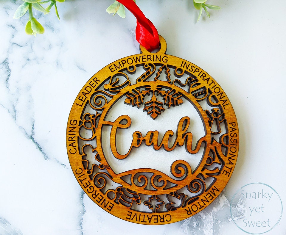 Coach layered ornament, Coach ornament, sports ornament, personalized ornament, unique wood ornament, laser cut ornament