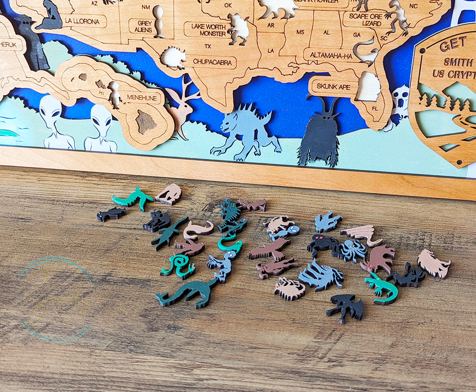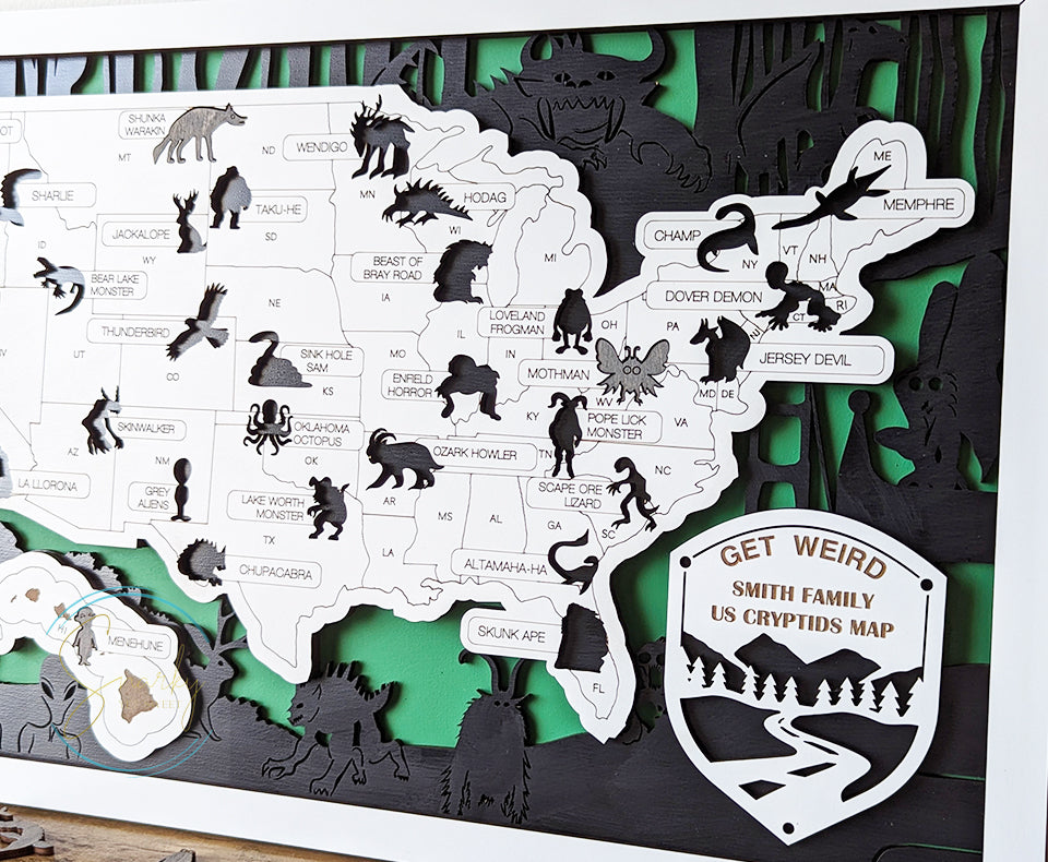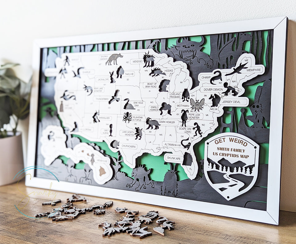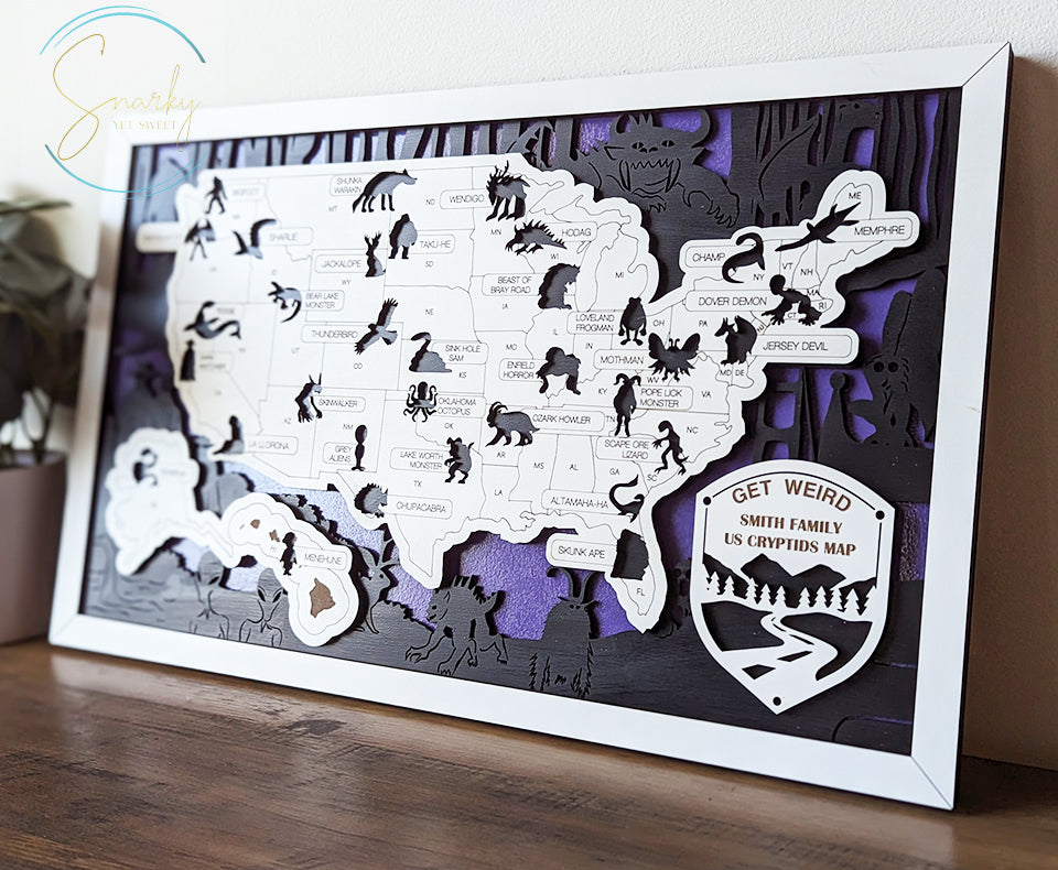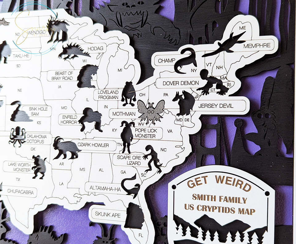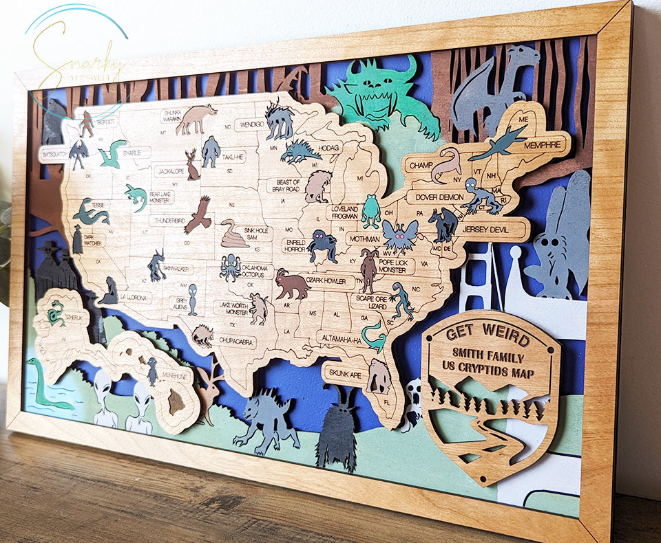 Cryptids travel map, cryptids gifts, mothman, bigfoot gifts, monsters, unique gift, cryptid fans, monsters in America