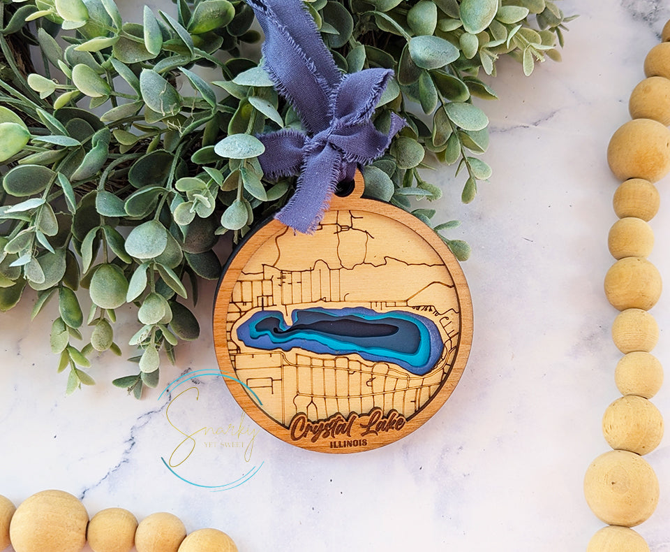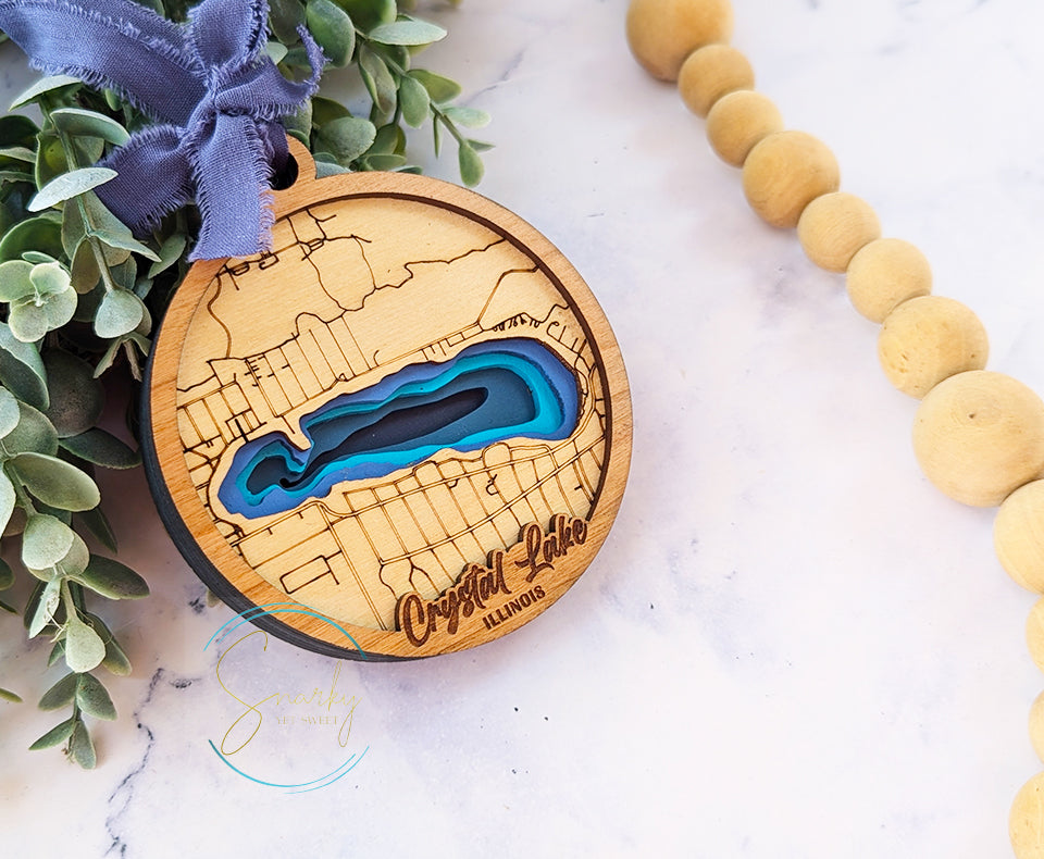 Each lake depth ornament is handcrafted in our Woodstock, Illinois workshop by our small family team. When you purchase from Snarky Yet Sweet, you're supporting a small business dedicated to creating meaningful keepsakes that celebrate the places you love.