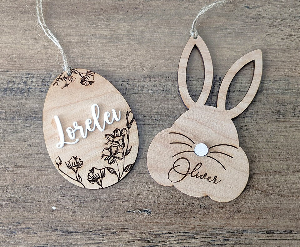 Easter basket name tags, wood Easter basket tags, wood engraved Easter tags, personalized Easter basket name tags, engraved Easter tags