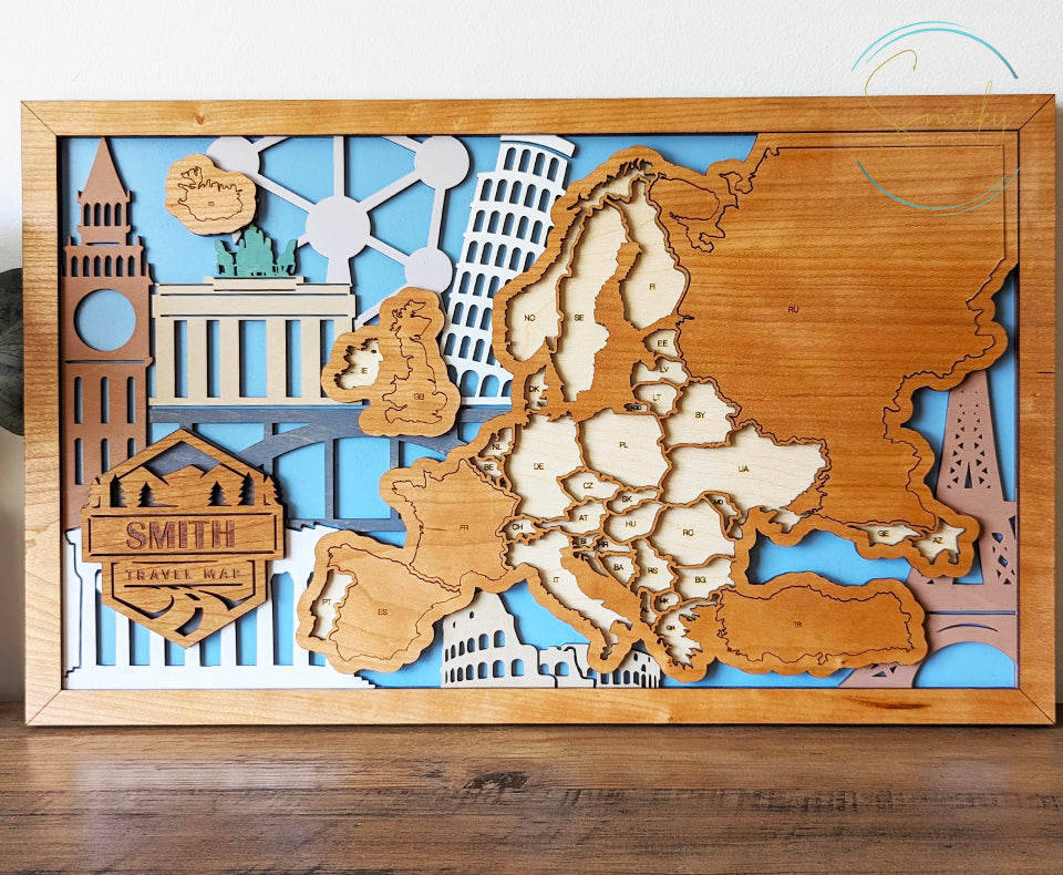 Europe Travel Map, European Map, travel bucket list, European travel gift, gift for hikers, gift for traveler, gift for family vacation