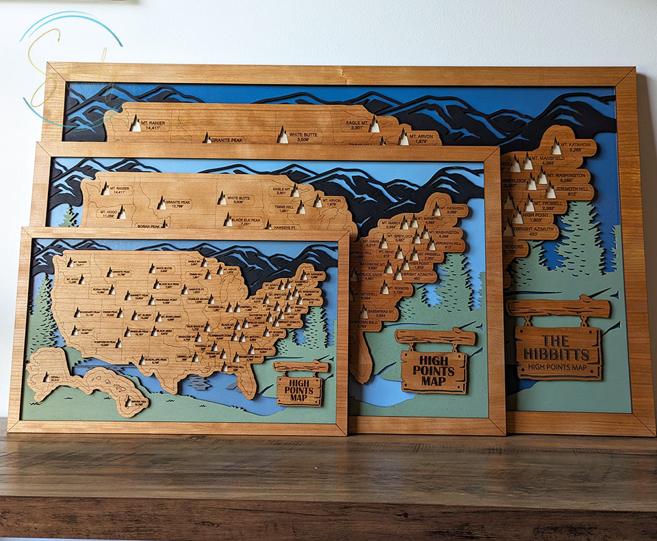 This sign is made from 3 layers of baltic birch and cherry woods to create this substantial and impressive display. Signs have sawtooth hangers installed on the back to hang on the wall. If you are going to hang the sign on the wall we suggest using a bit of super glue when you add your pins in so they don't fall out. We offer our maps in 3 different sizes to accommodate any area you'd like to hang it (see photos for a comparison of sizes).