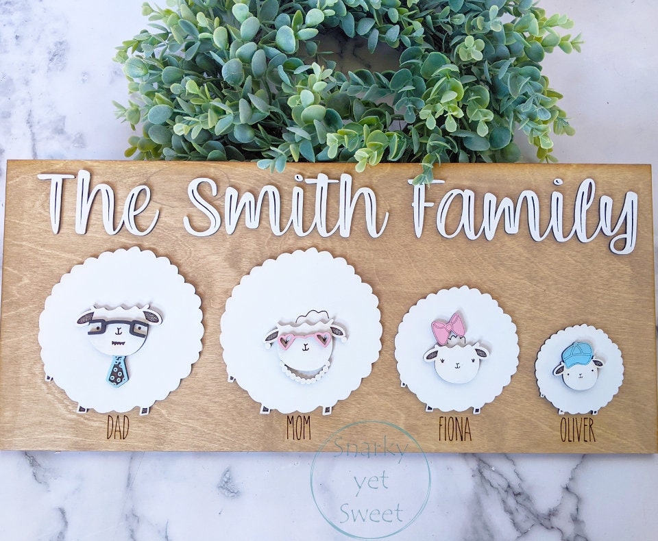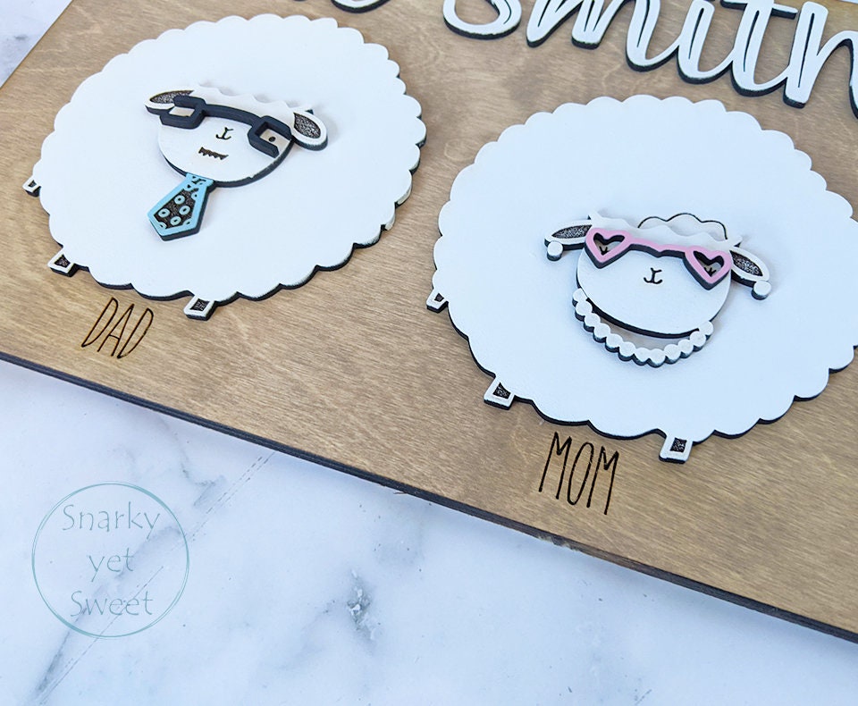Fluffy Sheep Family Sign, 3d laser cut, Spring Easter home decor