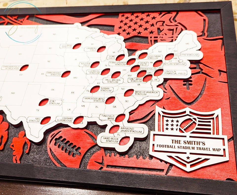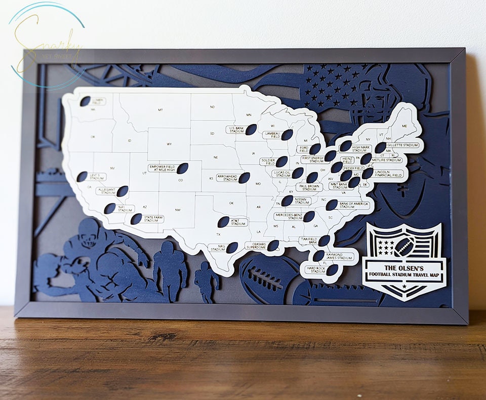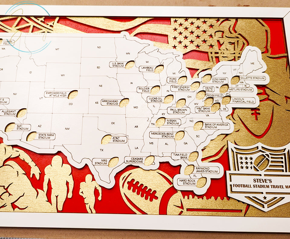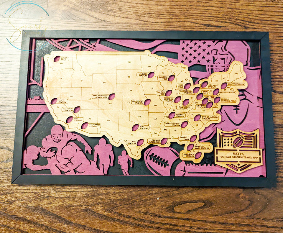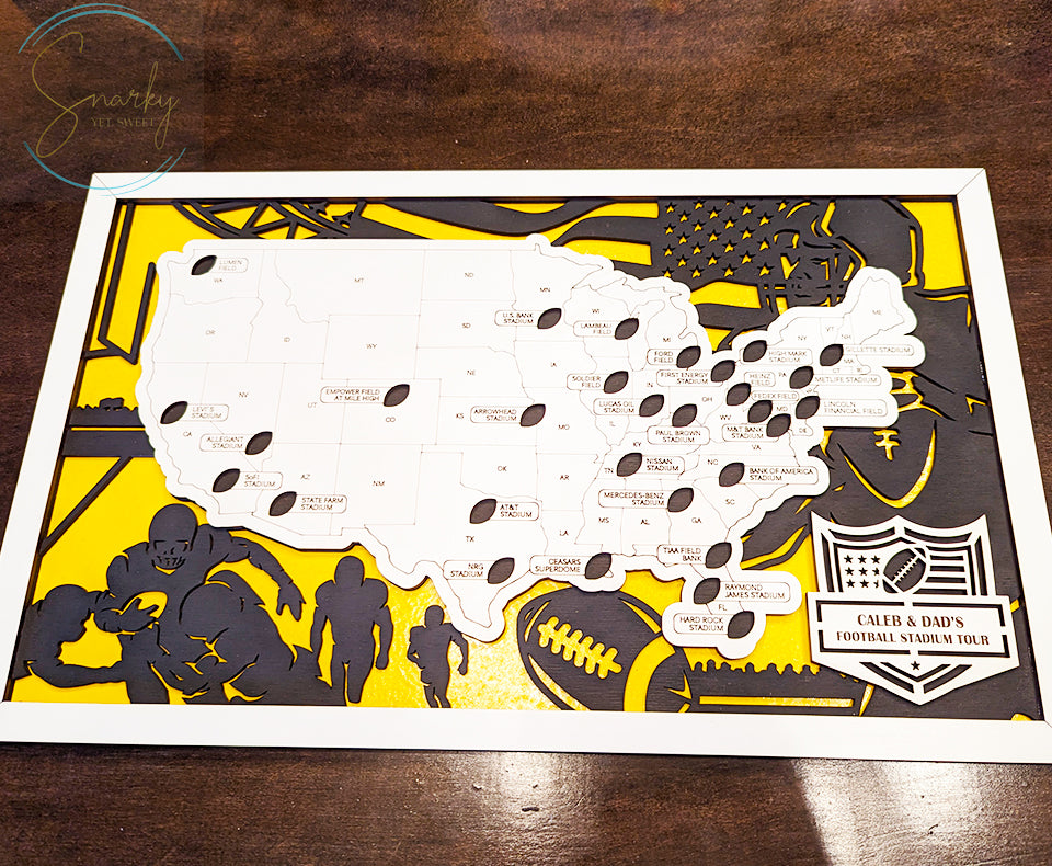 Transform your love for football into a beautiful display piece! Our handcrafted NFL Stadium Tracker Map lets you record each game-day adventure while creating a conversation-starting piece of wall art that celebrates your journey through America's beloved football stadiums.