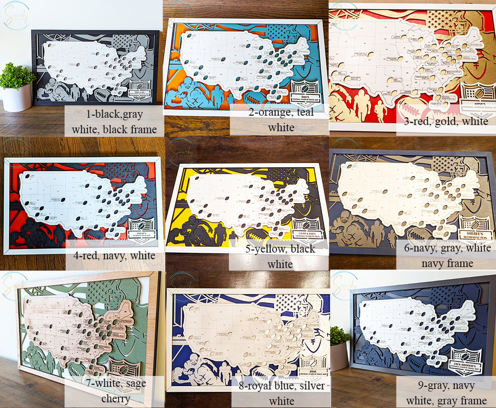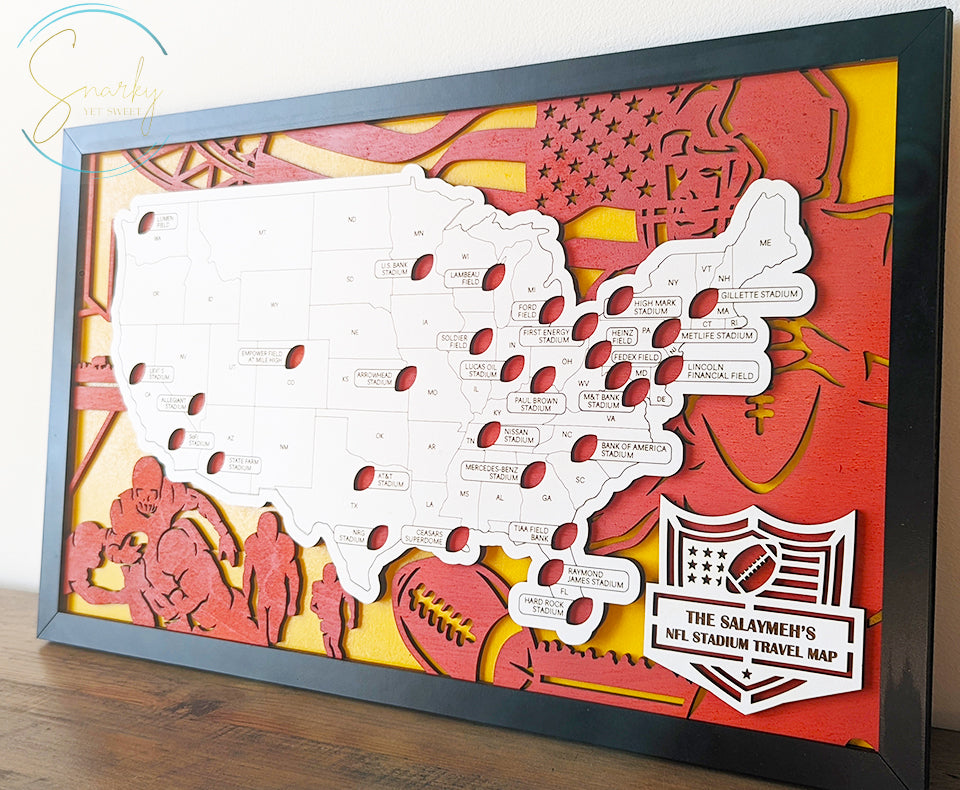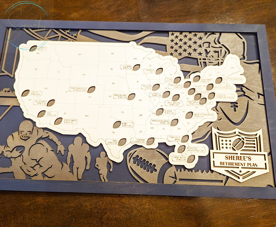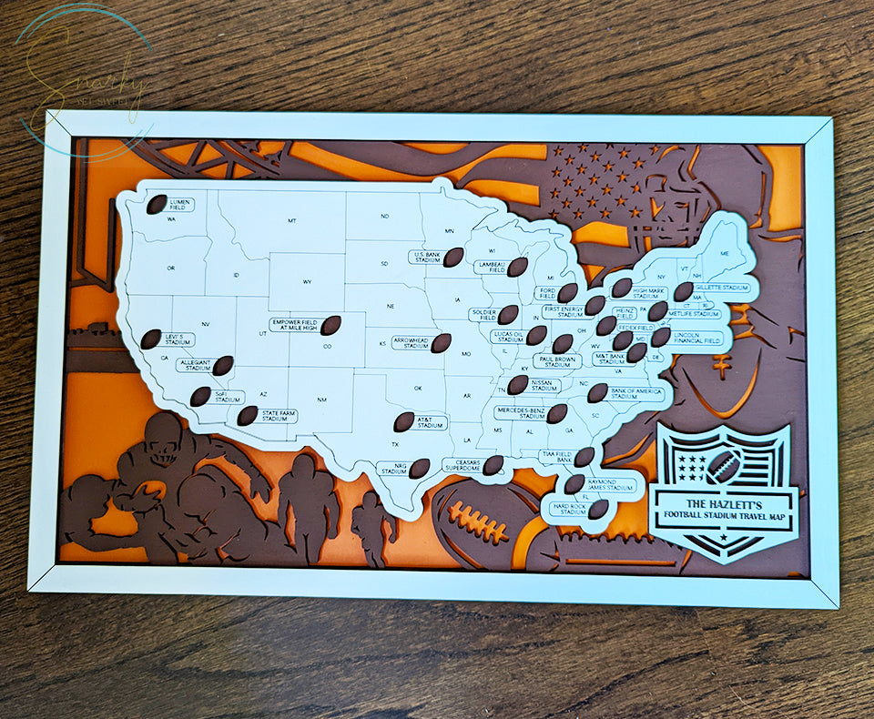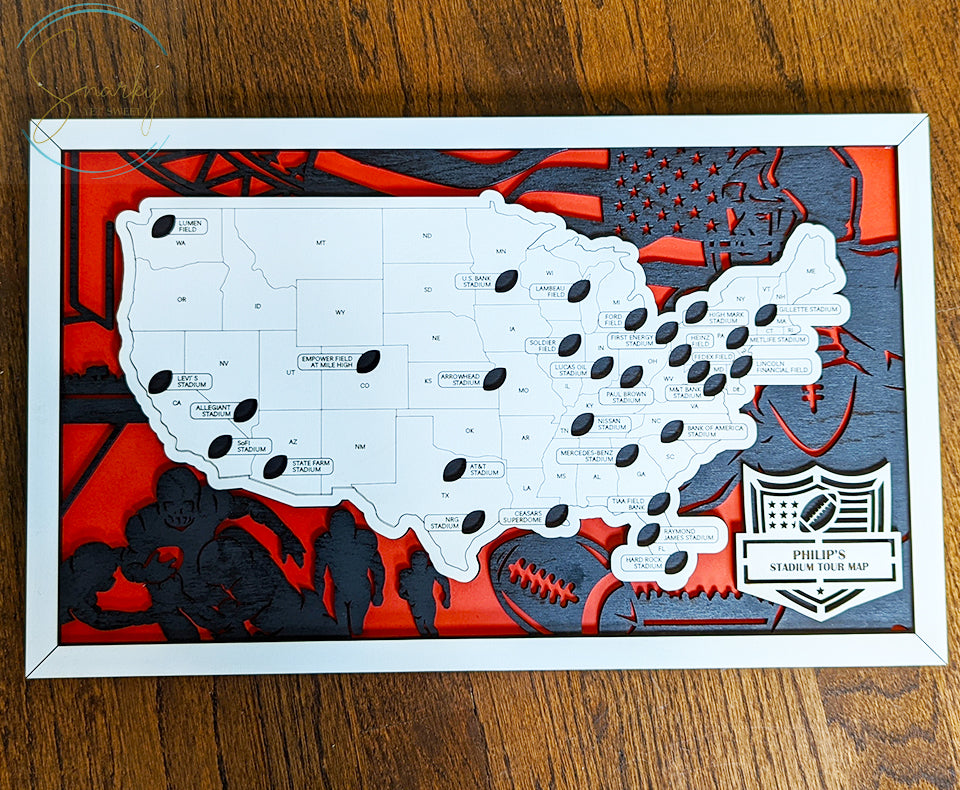 Transform your love for football into a beautiful display piece! Our handcrafted NFL Stadium Tracker Map lets you record each game-day adventure while creating a conversation-starting piece of wall art that celebrates your journey through America's beloved football stadiums.