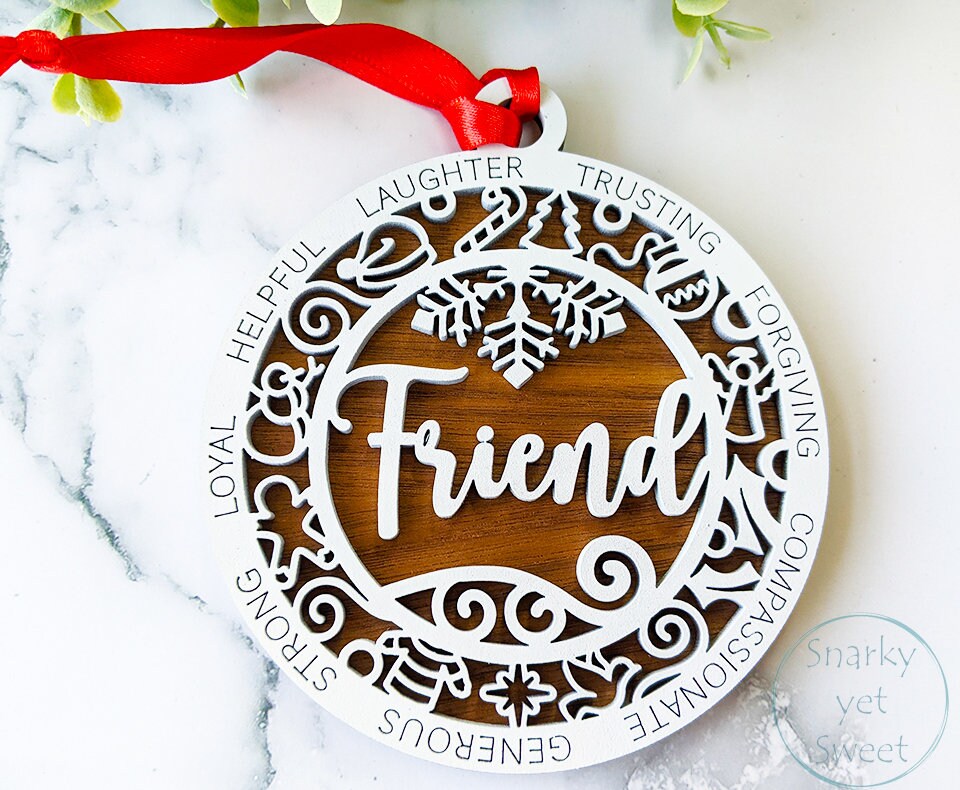 Friend layered ornament, friend ornament, best friend ornament, personalized ornament, unique wood ornament, laser cut ornament