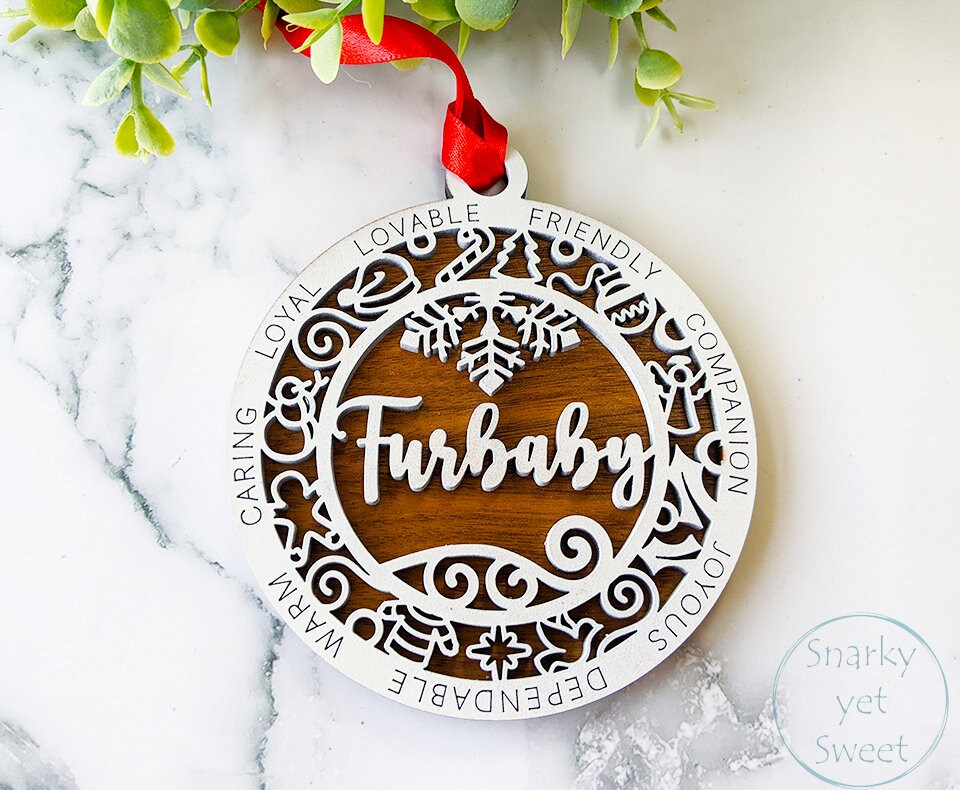Furbaby layered ornament, furbaby ornament, pet ornament, personalized ornament, unique wood ornament, laser cut ornament