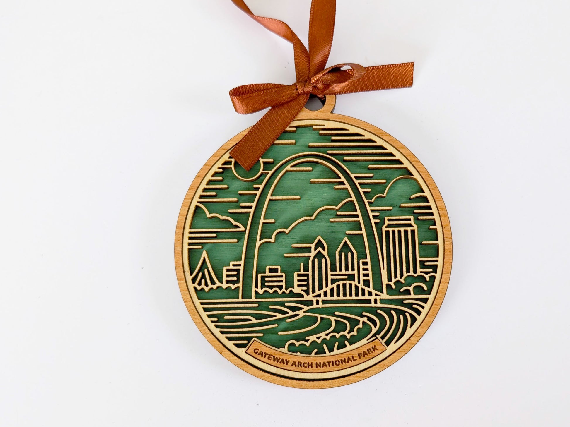 Relive your favorite trip to Gateway Arch National Park with this beautiful handmade wood ornament. Ornaments are hand painted with details from the park and a gorgeous laser cut and engraved cherry wood that features many icons specific to Gateway Arch. These ornaments are great reminders of your favorite family vacation or hiking adventure and make great gifts for the avid hiker or adventurer in your life.