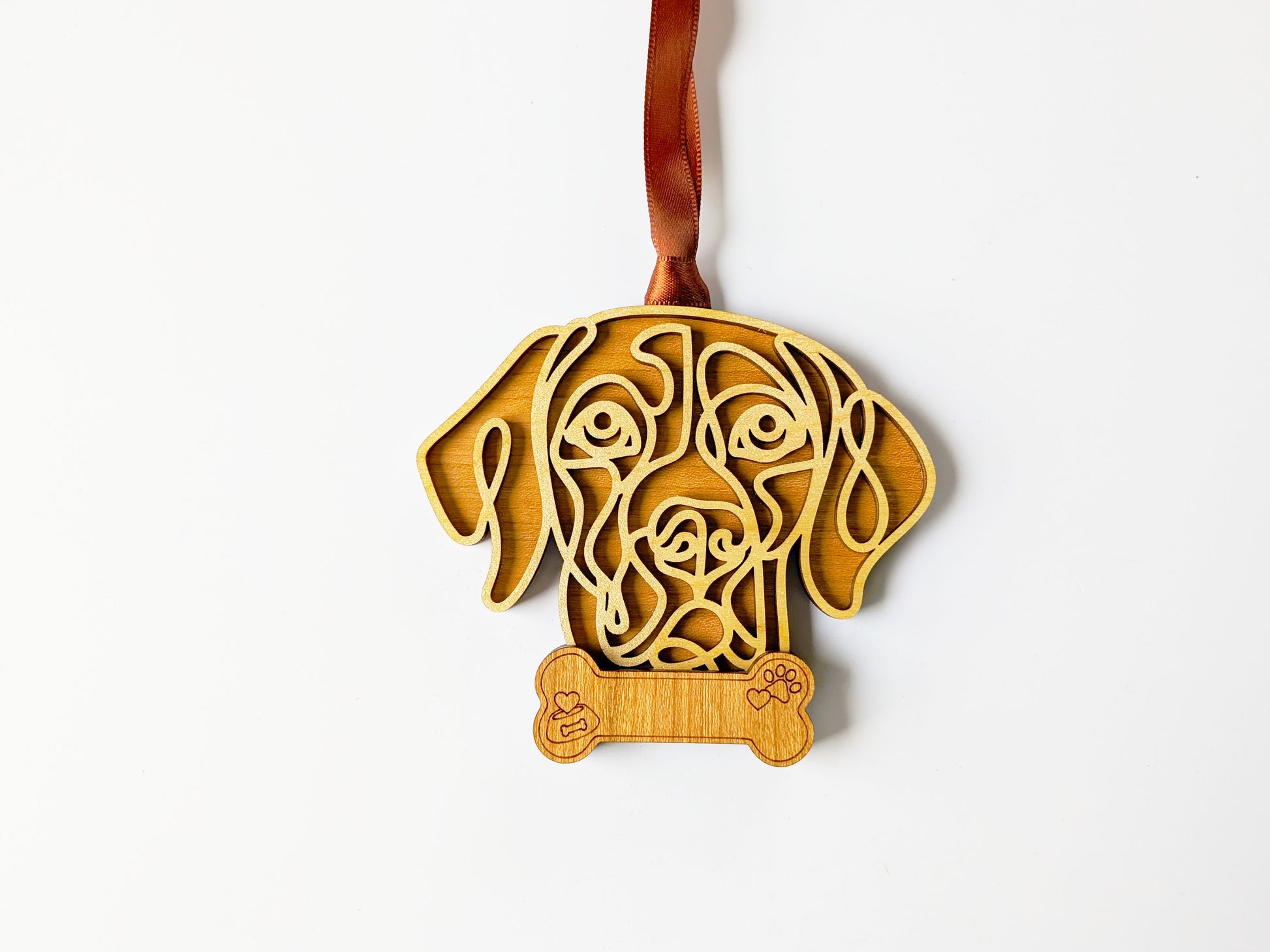 Celebrate your favorite furry friend with this handcrafted wooden dog ornament. Each piece features an intricately layered design that captures your pup’s personality in warm cherry and birch woods. Whether displayed year-round or hung proudly during the holidays, these keepsakes make a heartfelt gift for pet lovers and proud dog parents alike.