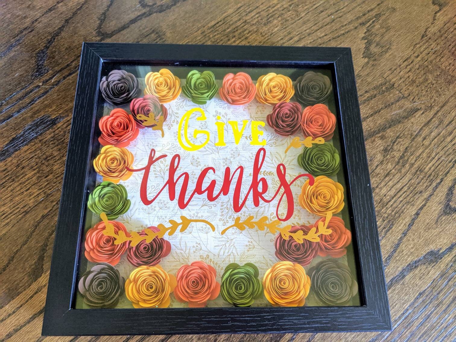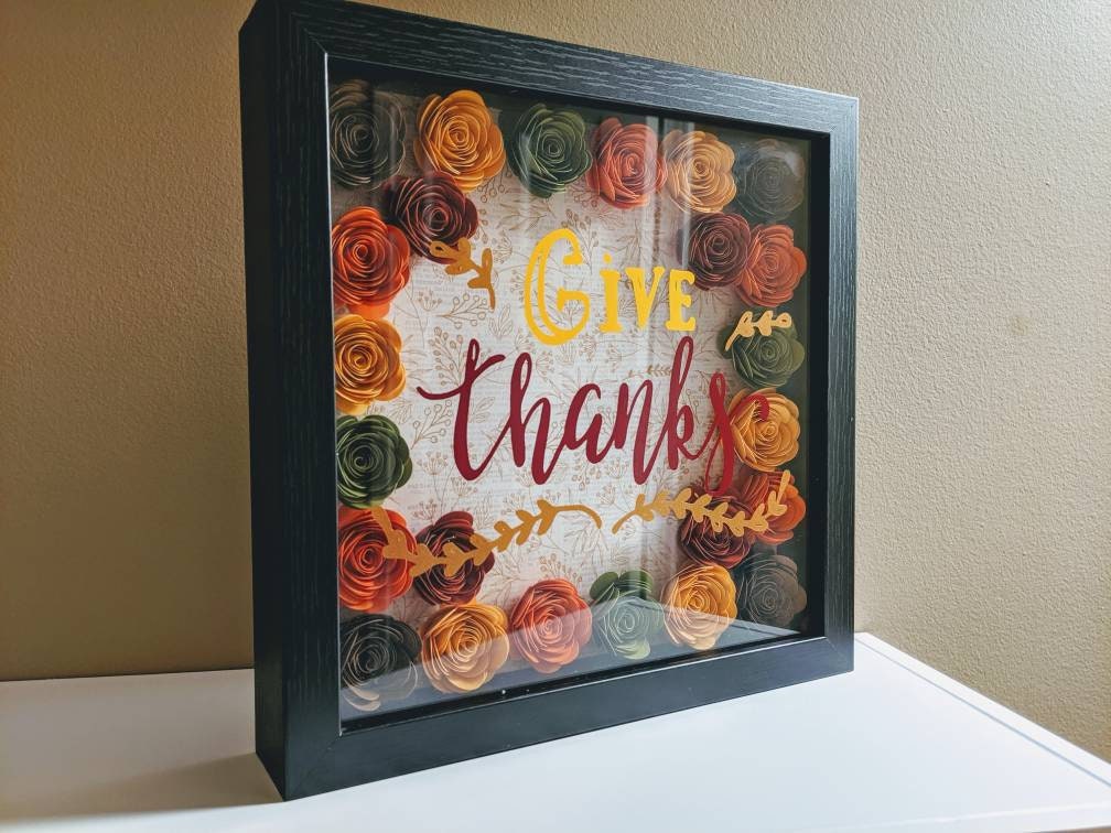 Give Thanks paper flower shadow box wall home decor fall or Thanksgiving
