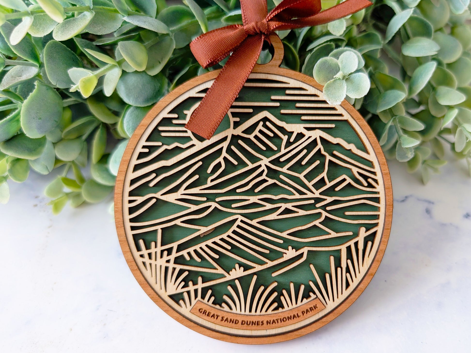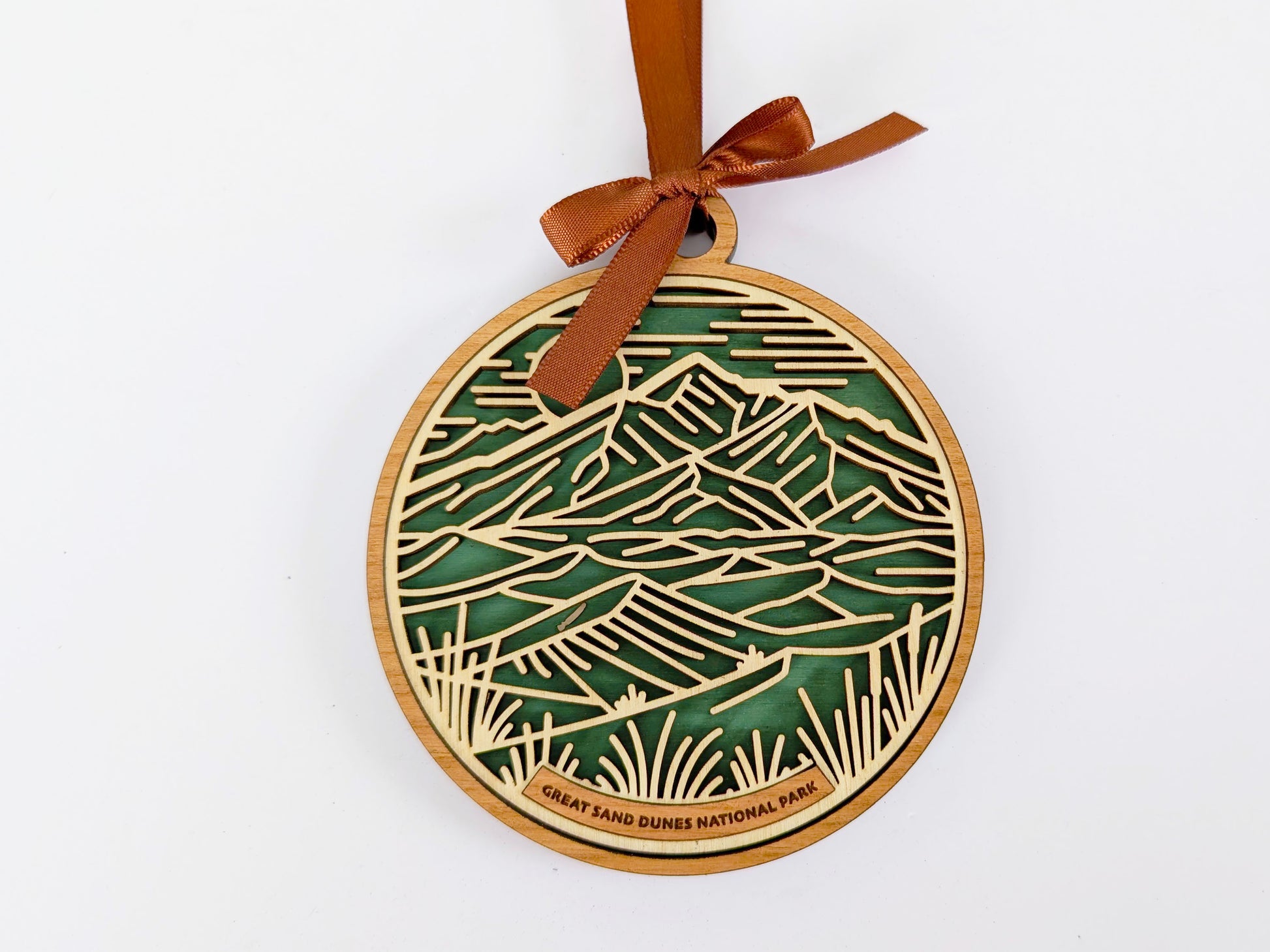 Relive your favorite trip to Great Sand Dunes National Park with this beautiful handmade wood ornament. Ornaments are hand painted with details from the park and a gorgeous laser cut and engraved cherry wood that features many icons specific to Great Sand Dunes. These ornaments are great reminders of your favorite family vacation or hiking adventure and make great gifts for the avid hiker or adventurer in your life.