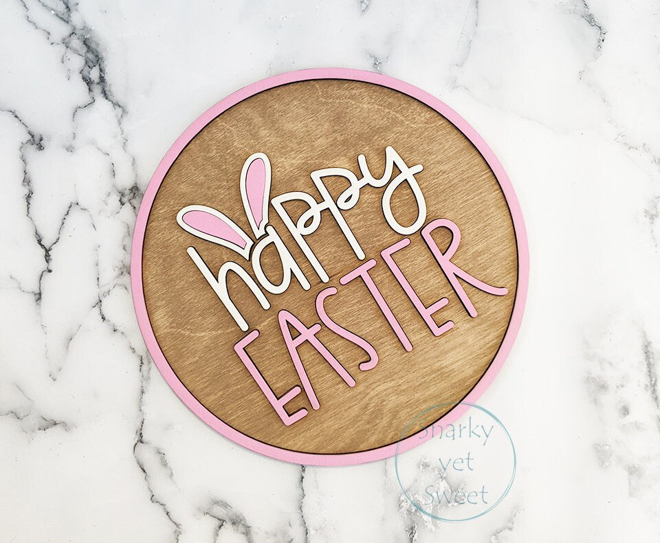 Happy Easter Wood Round Sign, laser cut, glowforge