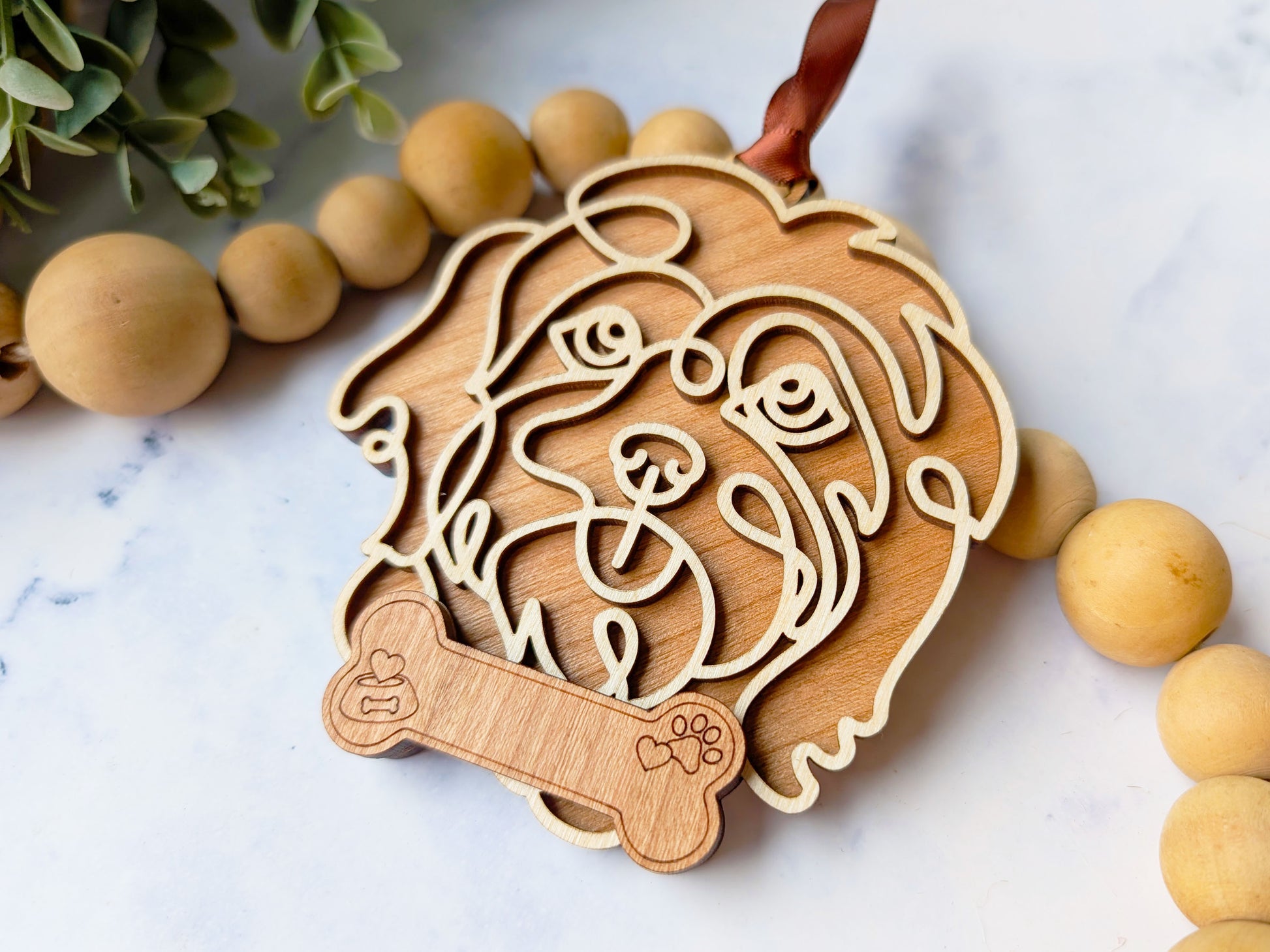 Celebrate your favorite furry friend with this handcrafted wooden dog ornament. Each piece features an intricately layered design that captures your pup’s personality in warm cherry and birch woods. Whether displayed year-round or hung proudly during the holidays, these keepsakes make a heartfelt gift for pet lovers and proud dog parents alike.