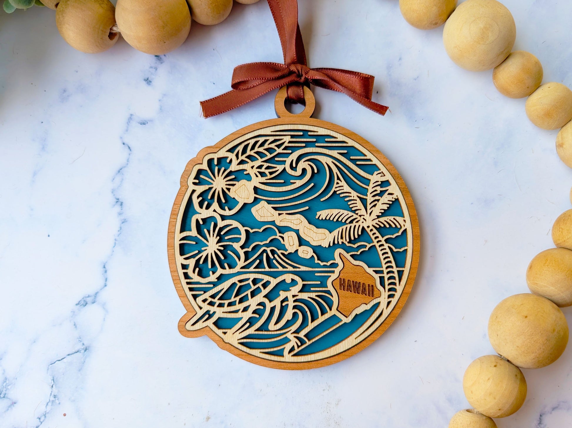 Celebrate Hawaii's heritage with this stunning handcrafted wooden ornament. Each piece features intricate details capturing the state's culture, history, and topography . These premium keepsakes transform cherished travel memories into beautiful display pieces that are perfect to display or gift.