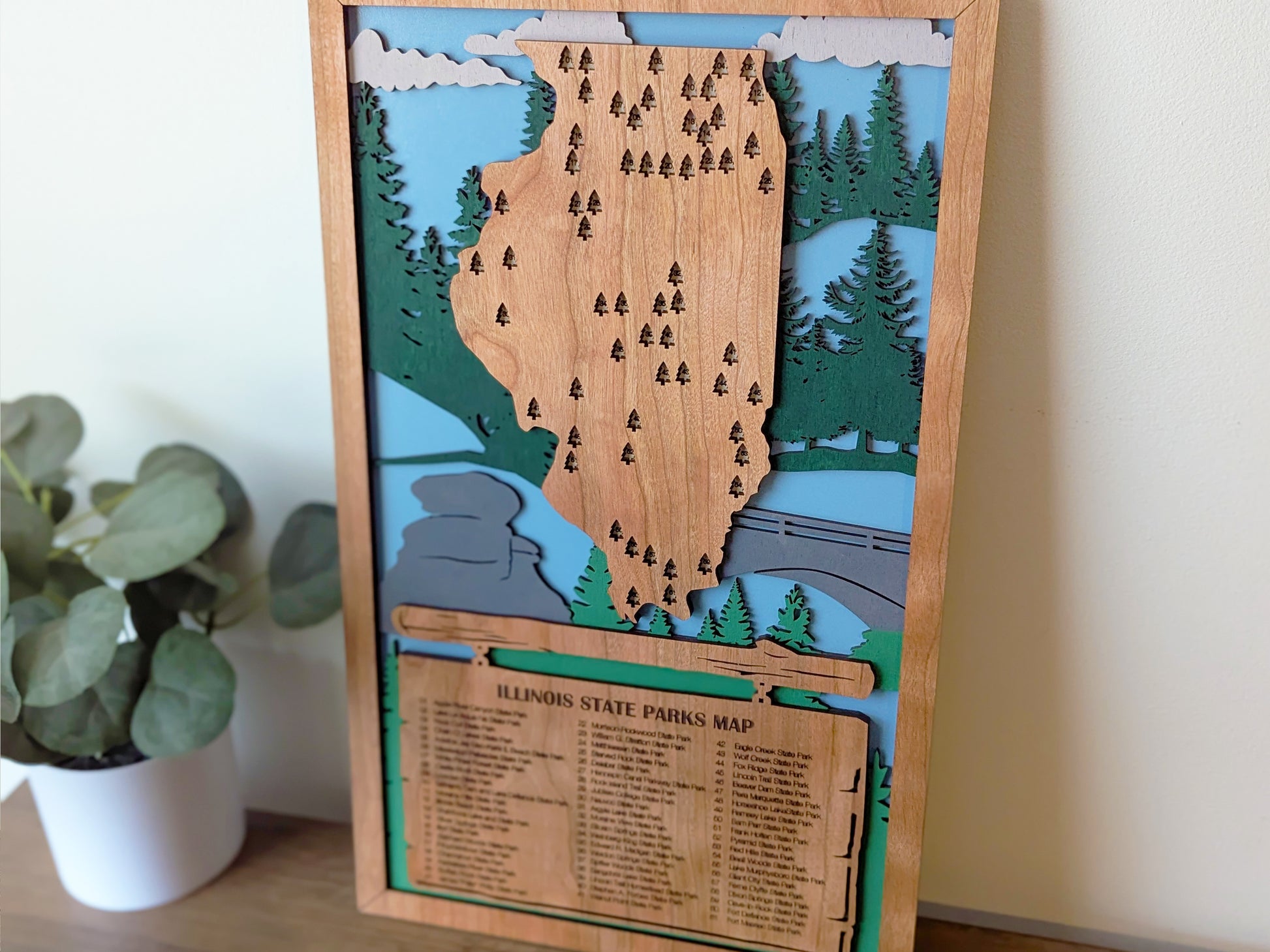 Transform your Illinois explorations into a beautiful keepsake! Our handcrafted Illinois State Parks Map Tracker lets you document every state park visit while creating an eye-catching conversation piece that showcases your outdoor adventures.