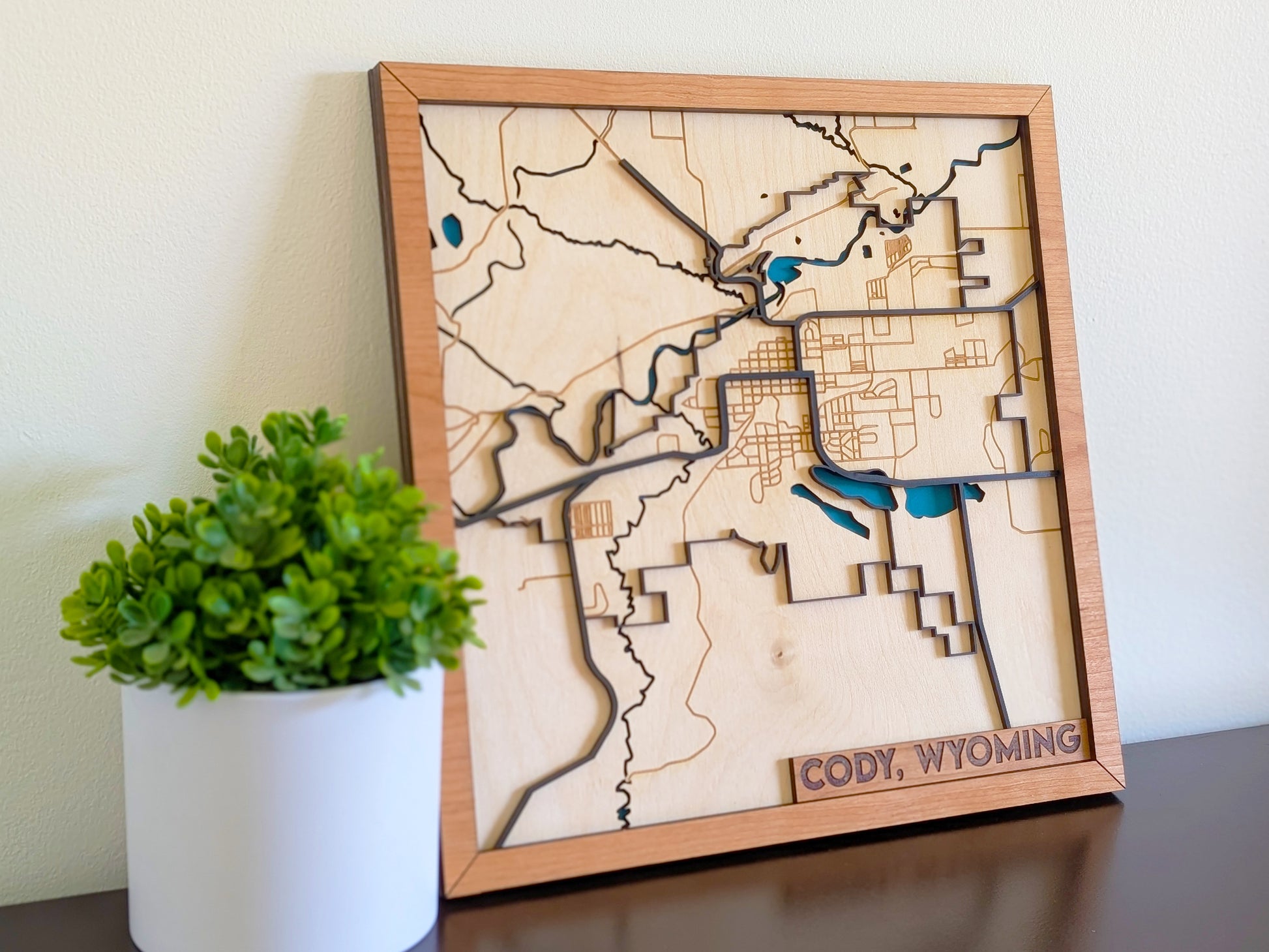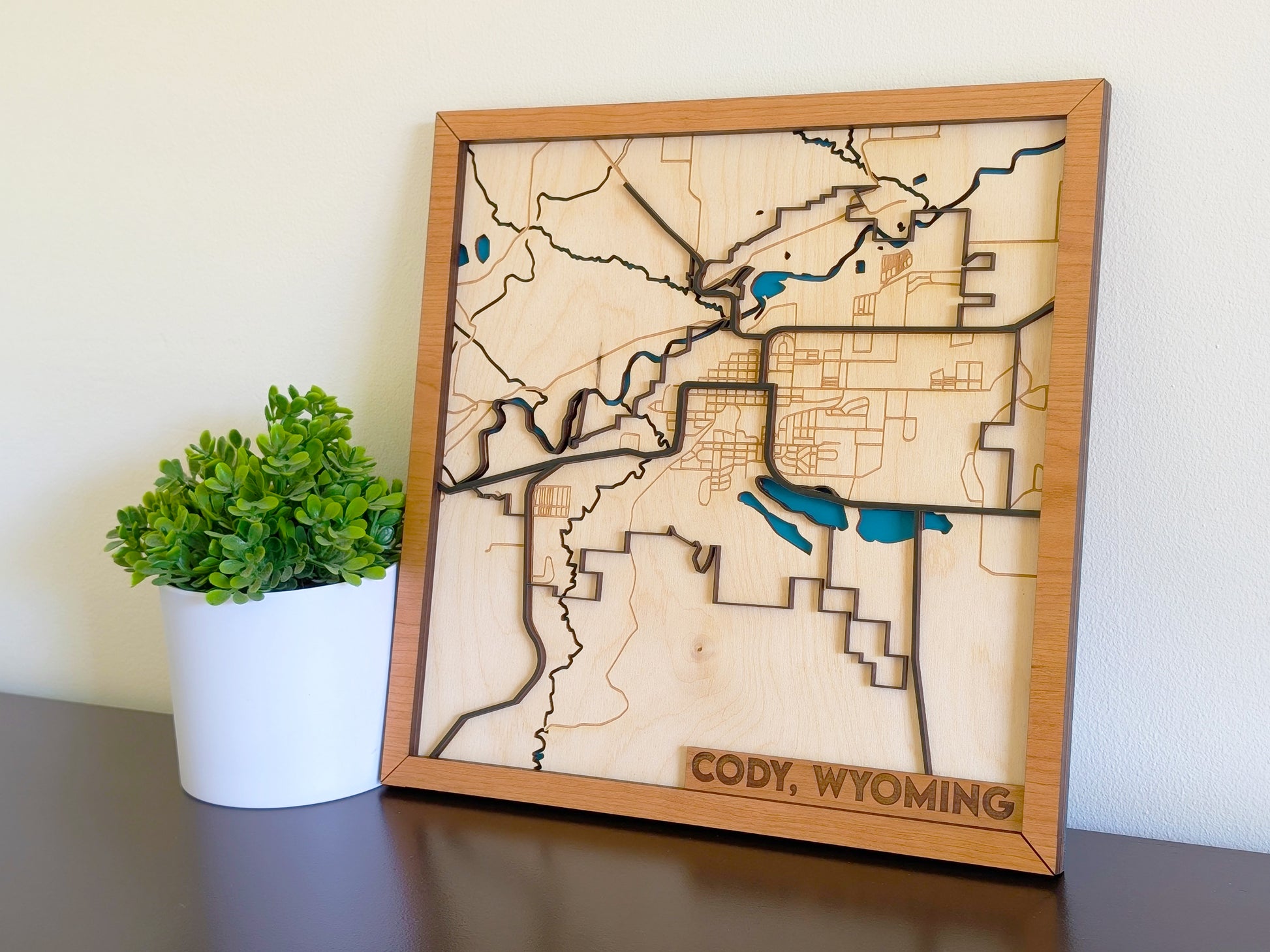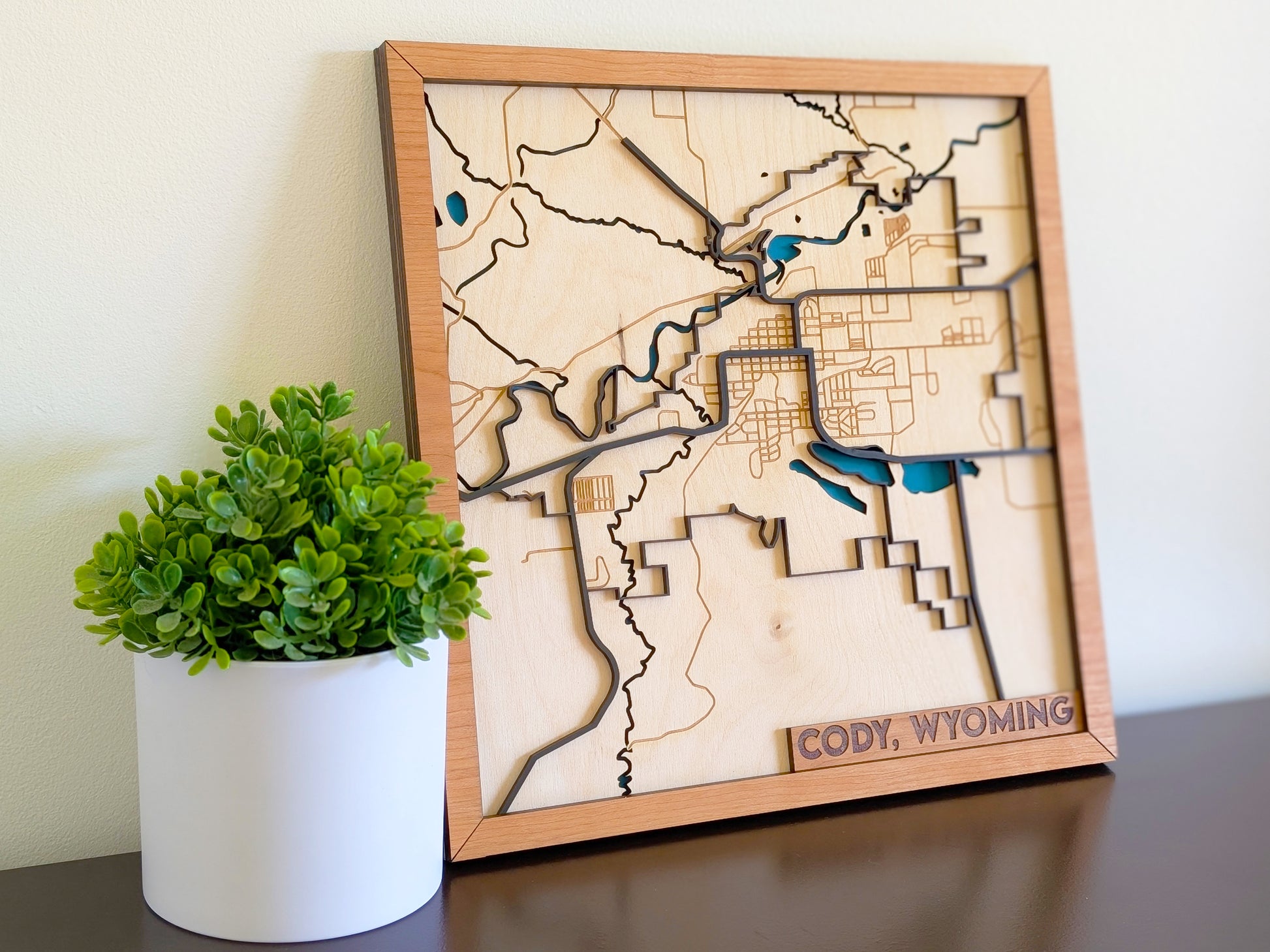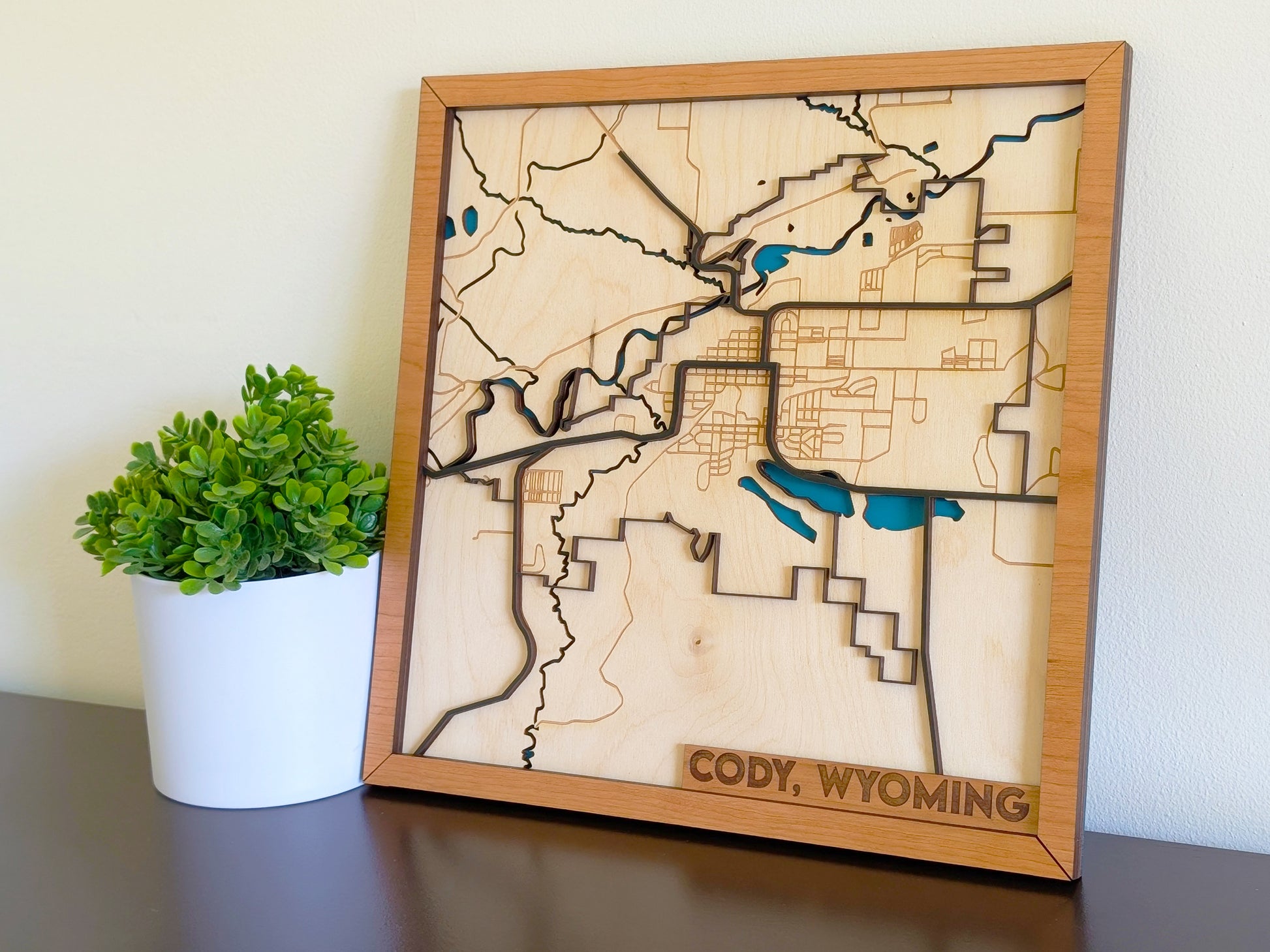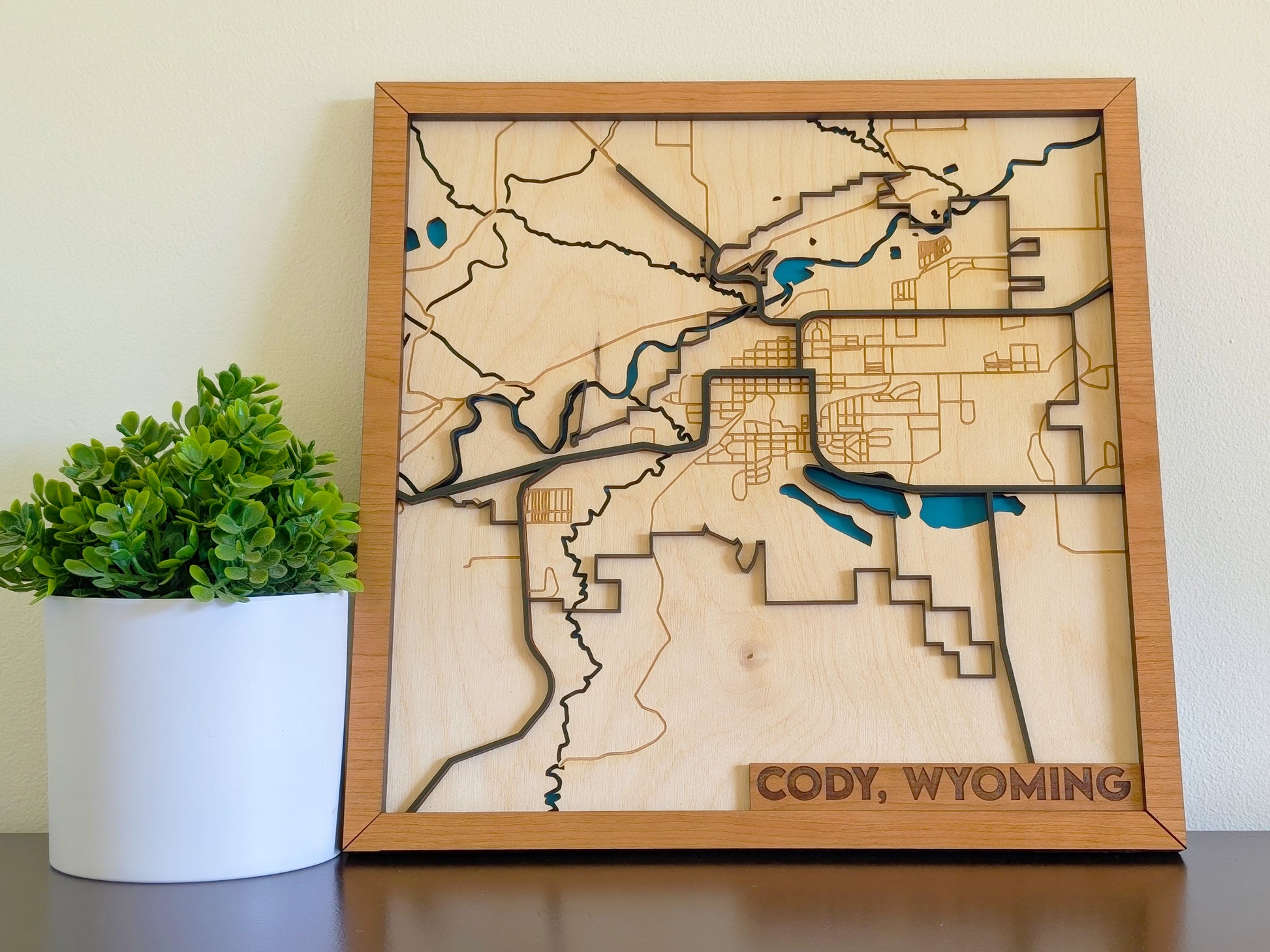 Cody City Map Wall Art | Detailed Downtown Streets | Layered Wood Map | Personalized Home Decor | Handcrafted 3D City Art | Yellowstone gift
