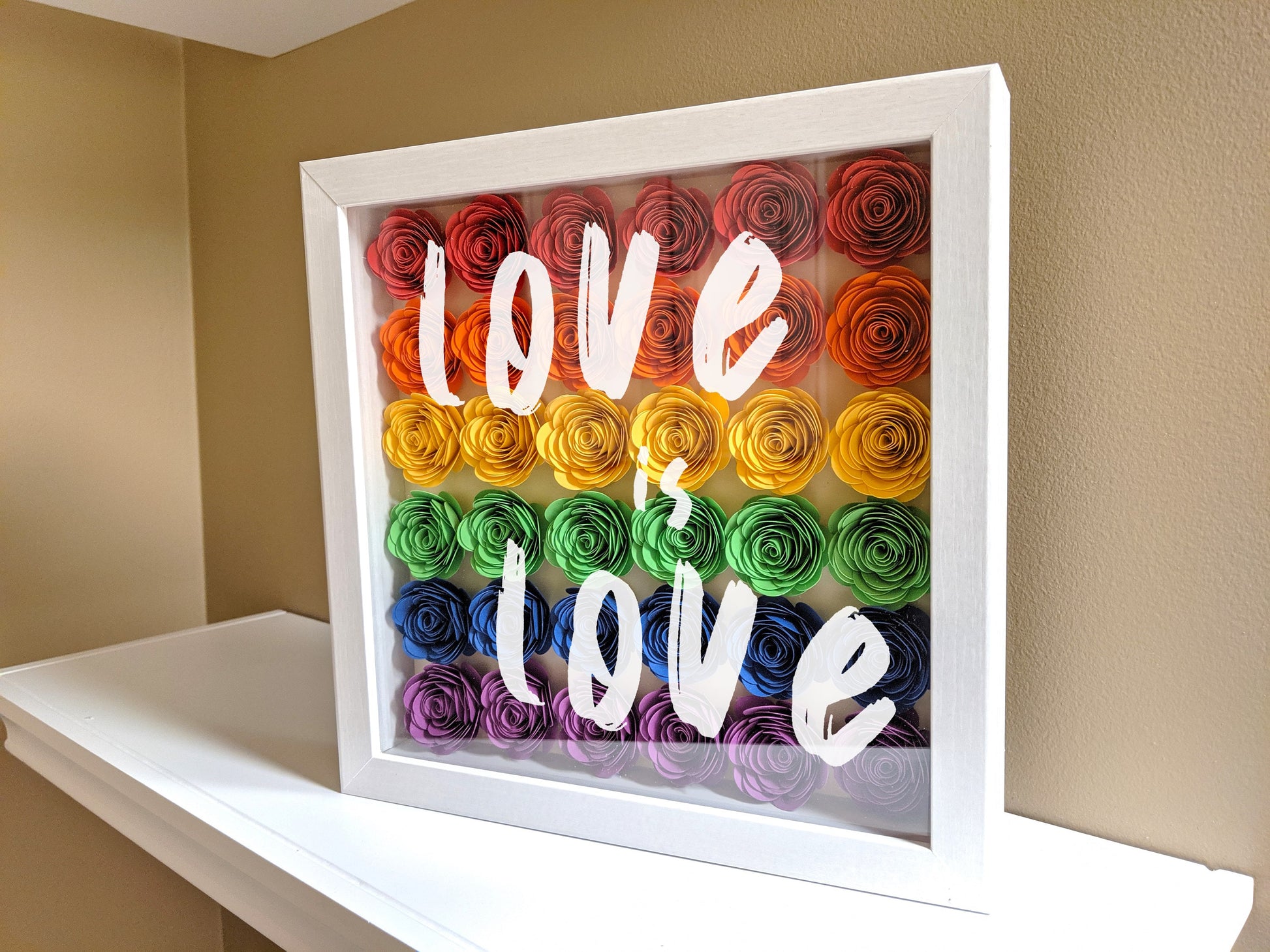 Love is love, LGBTQ rainbow, rolled paper flower shadow box, wall home decor, love is love gift, pride gift, lgbtq gifts for girlfriend