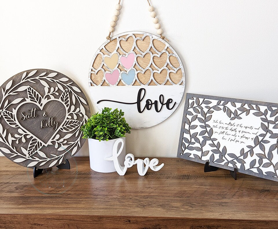 Love wood round, valentines door hanger, love door hanger, Valentine's Day gift, Valentines decor, front door decor, gift for her