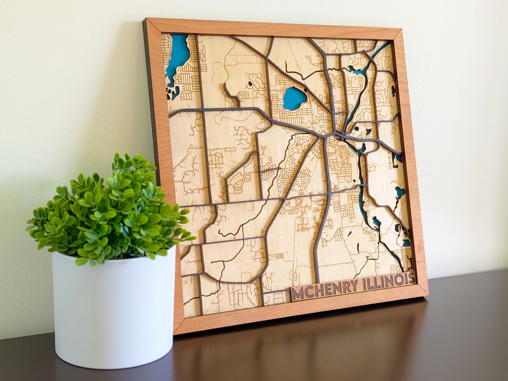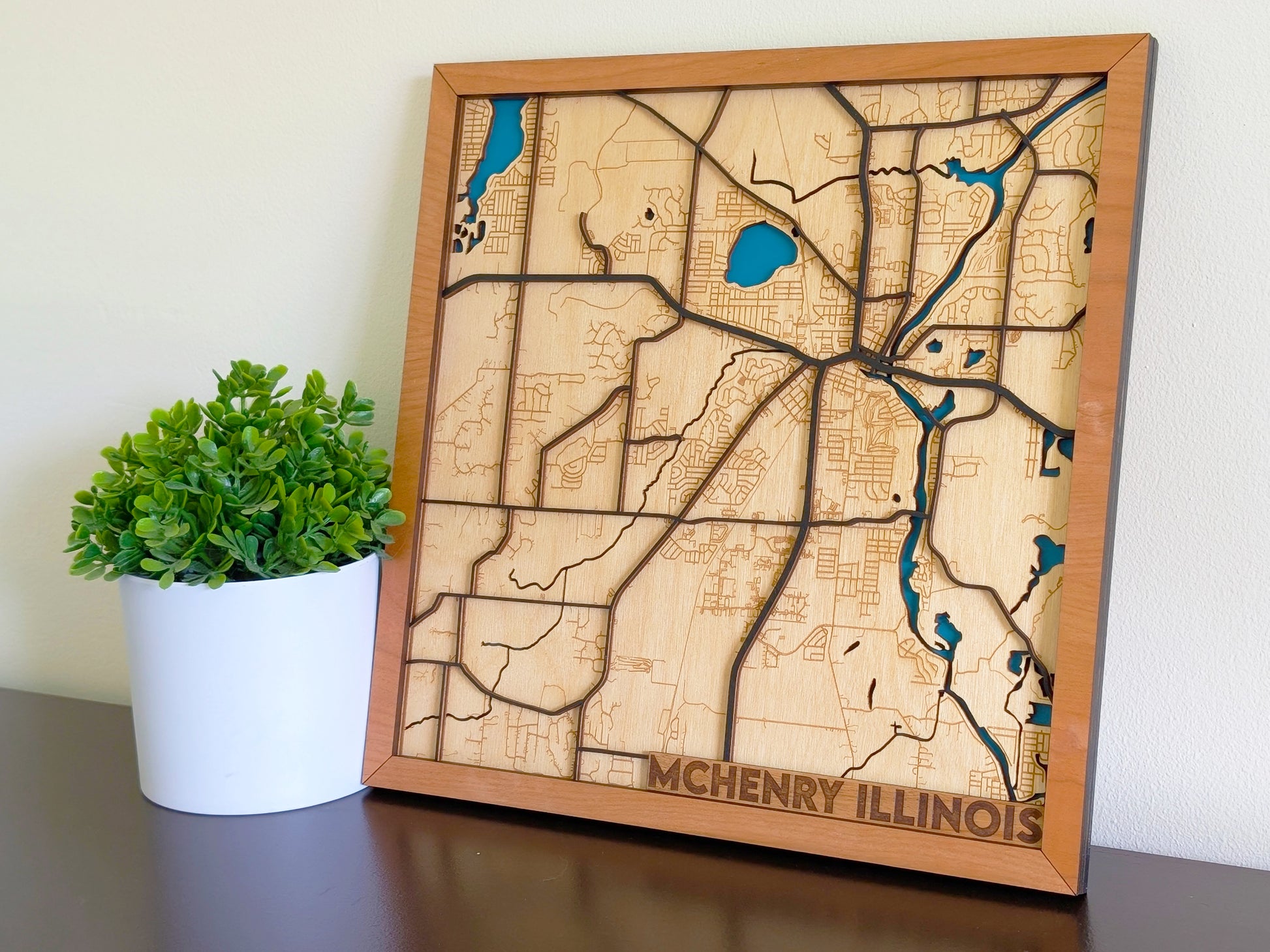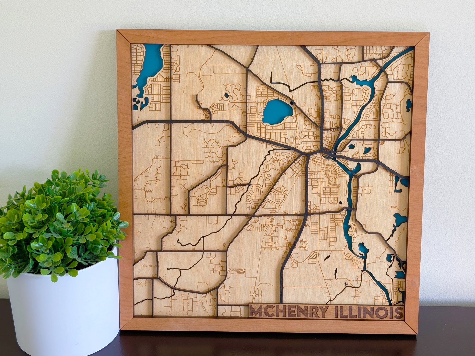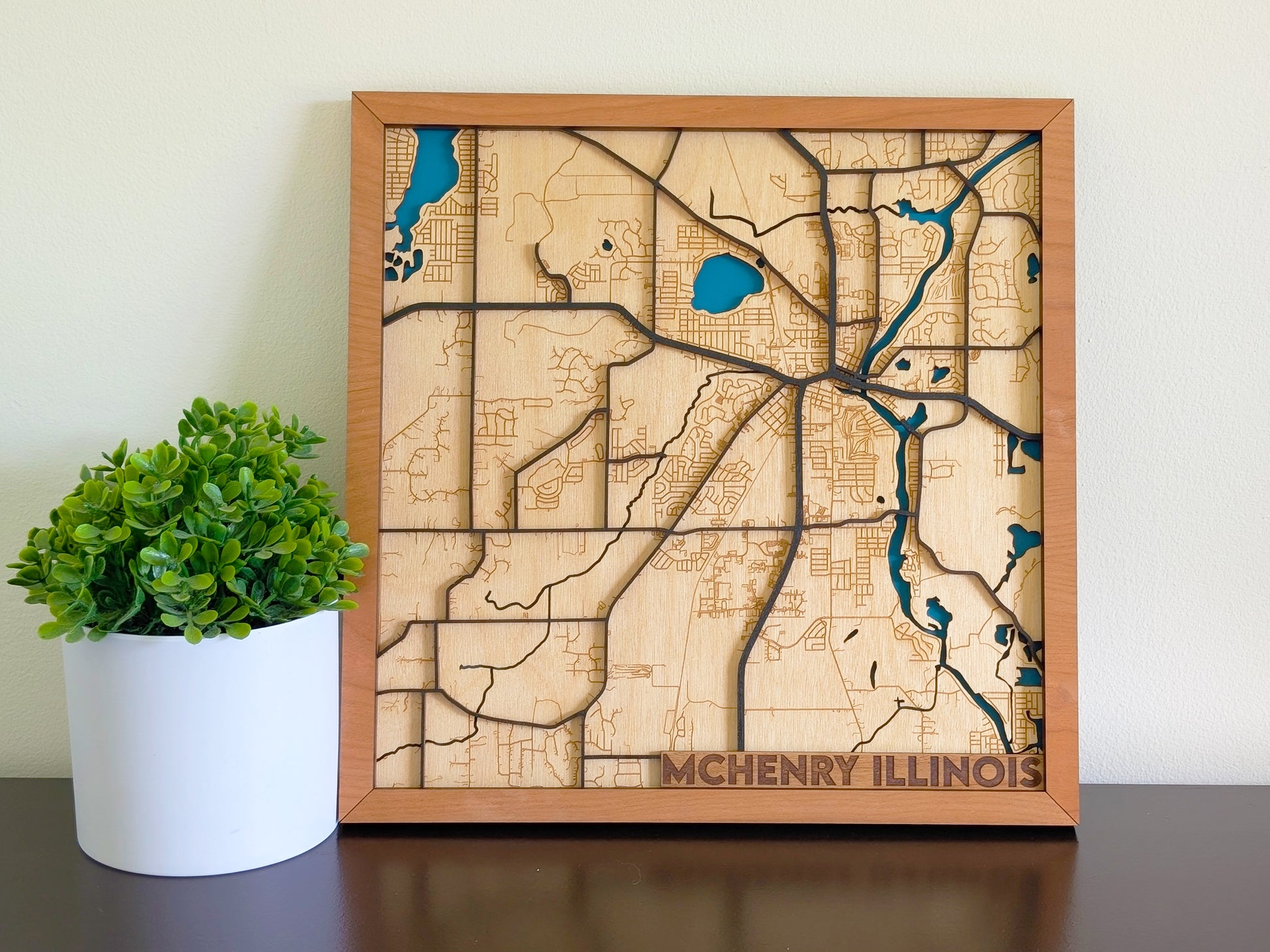 McHenry City Map Wall Art | Detailed Downtown Streets | Layered Wood Map | Personalized Home Decor | Handcrafted 3D City Art | McHenry gift