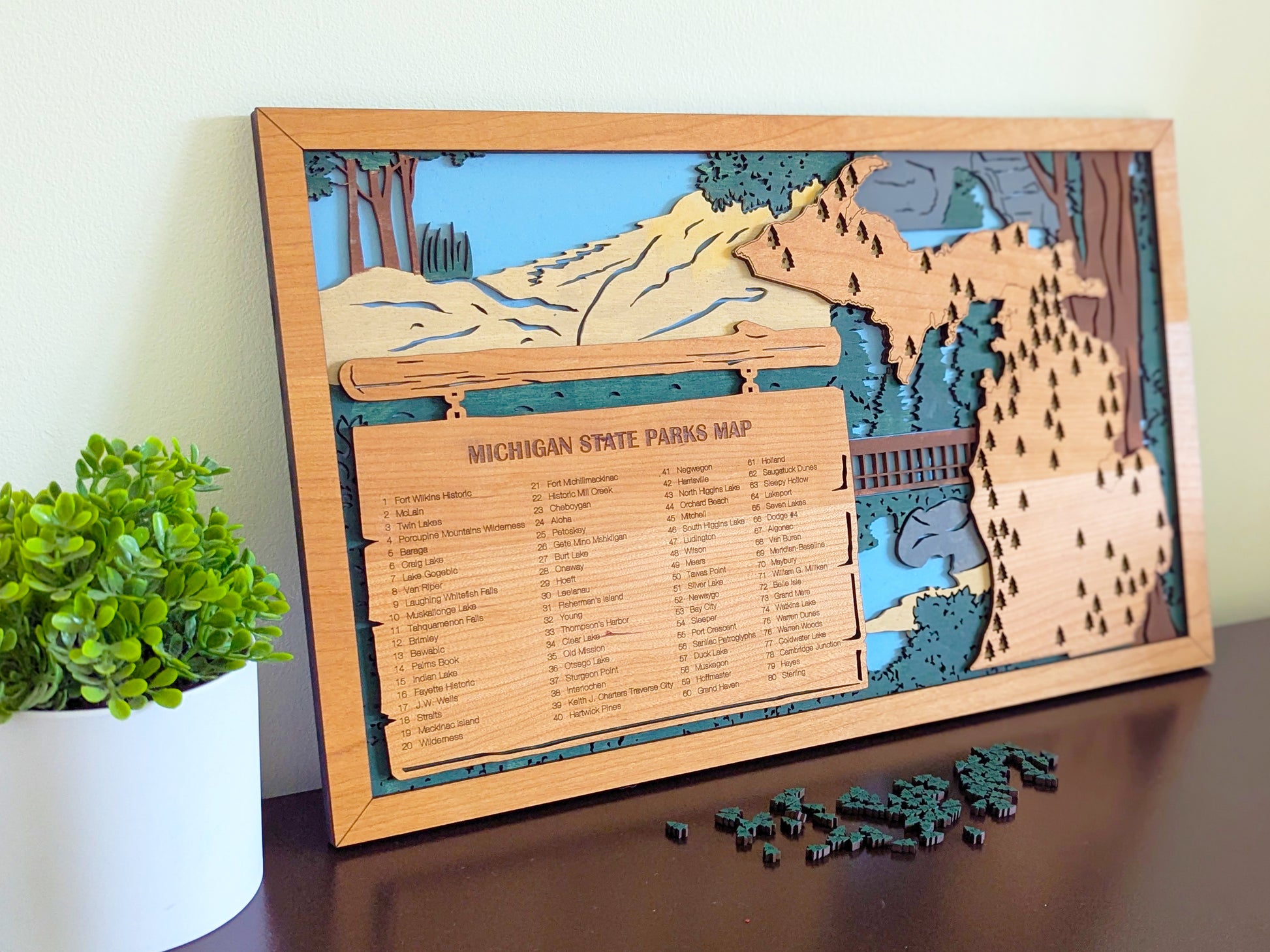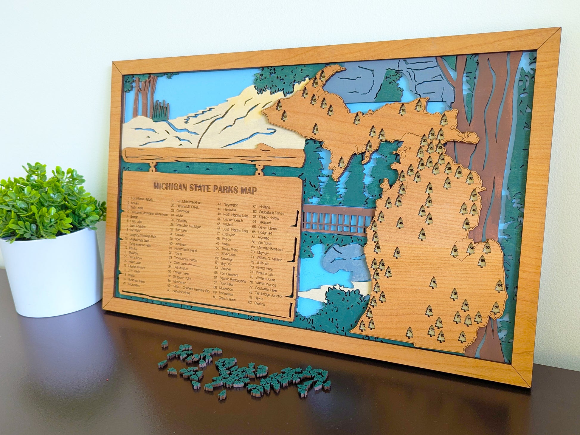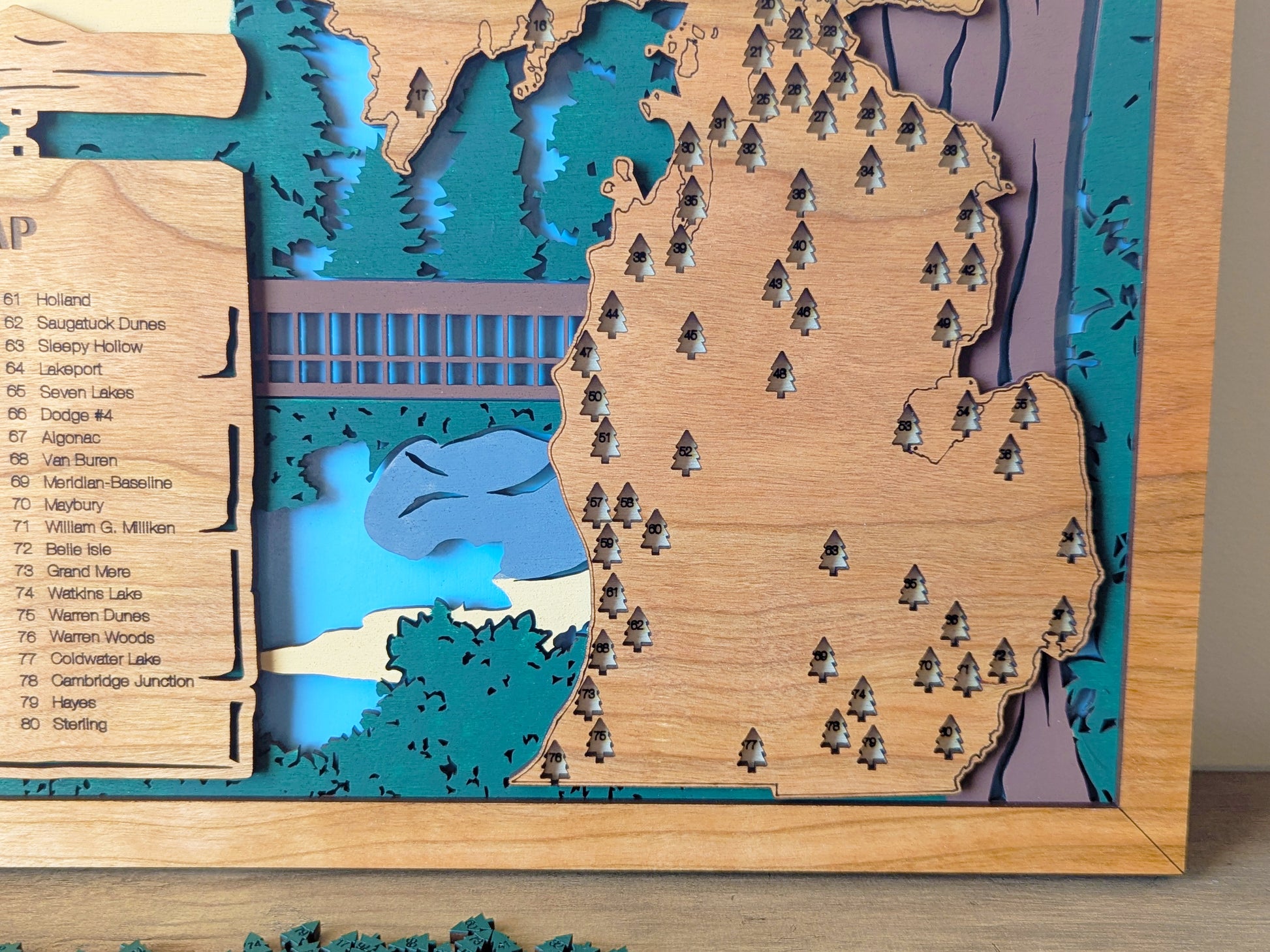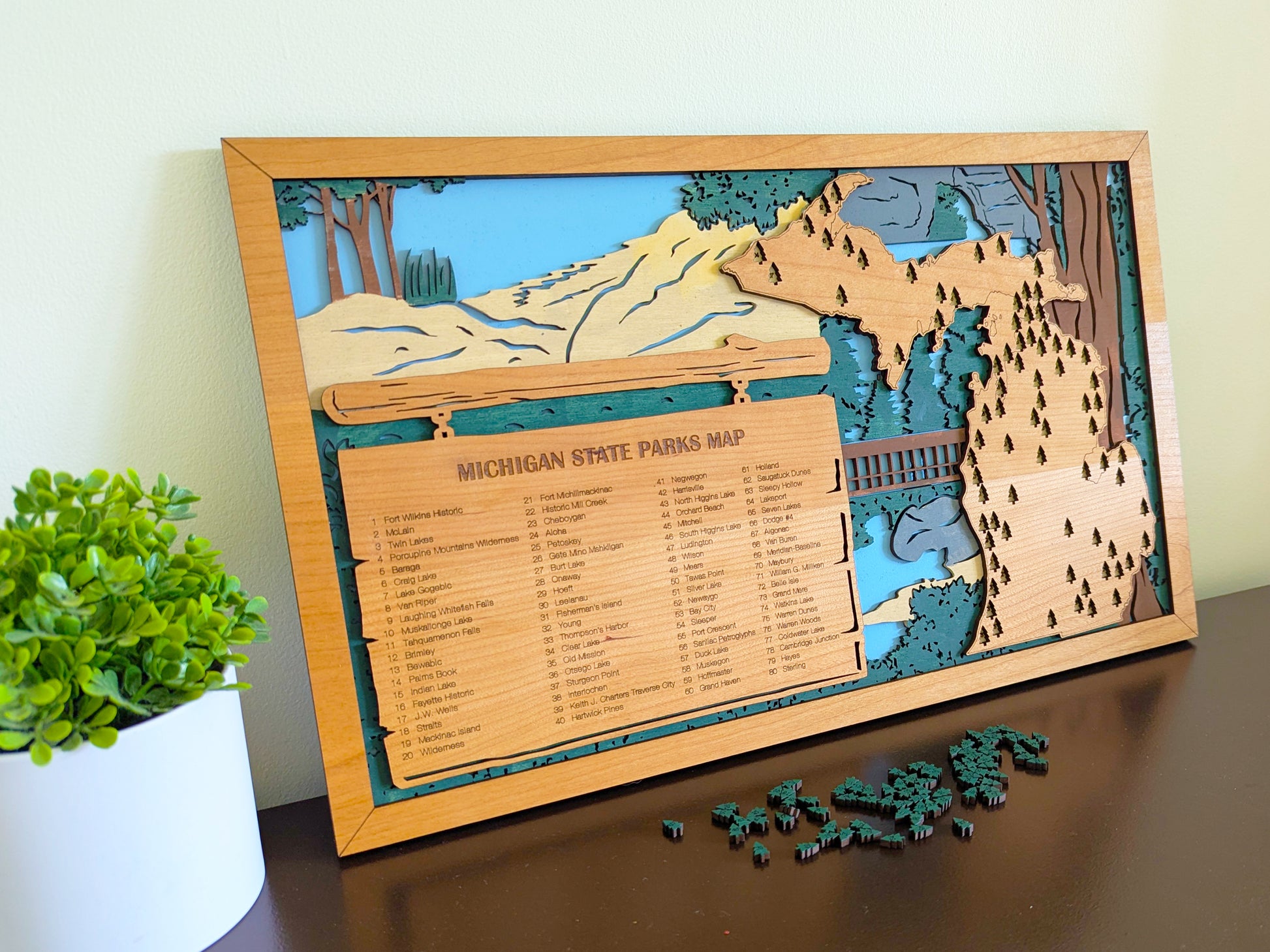 Transform your Michigan explorations into a beautiful keepsake! Our handcrafted Michigan State Parks Map Tracker lets you document every state park visit while creating an eye-catching conversation piece that showcases your outdoor adventures.