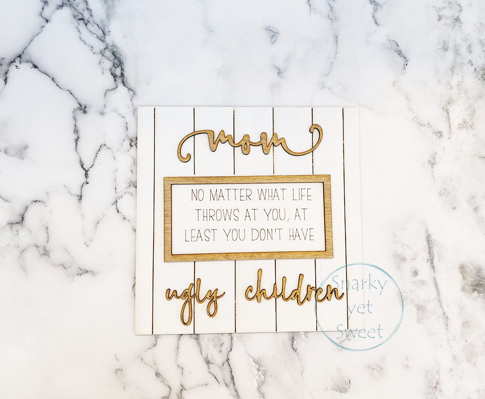 Mom Ugly Children Wood Sign, Mother's Day gift, laser cut