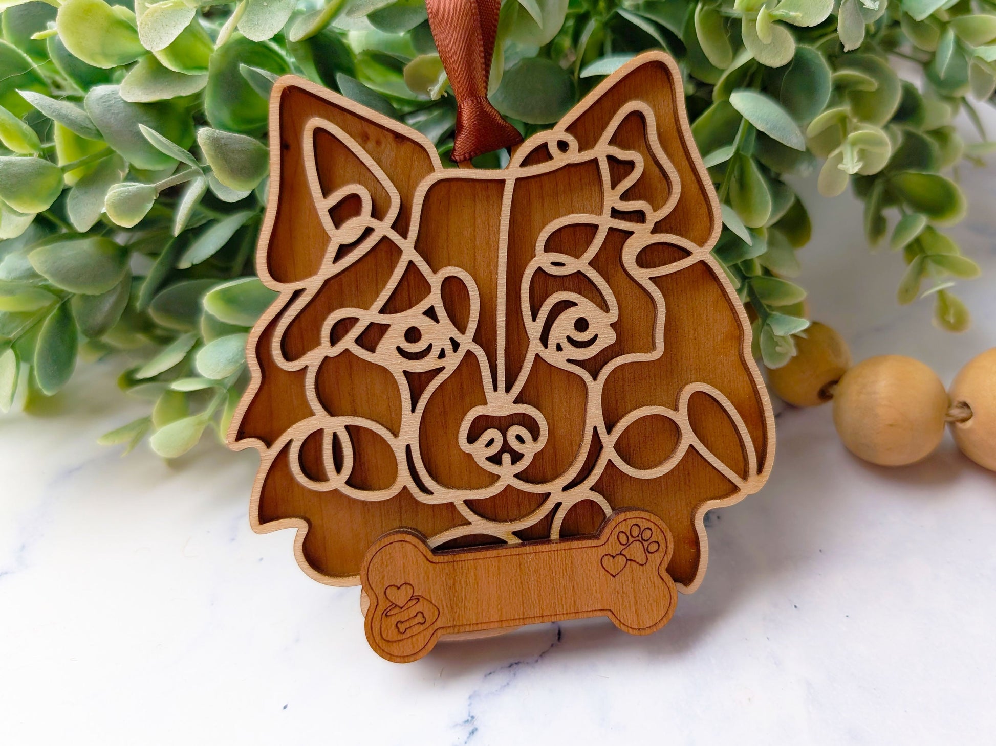 Celebrate your favorite furry friend with this handcrafted wooden dog ornament. Each piece features an intricately layered design that captures your pup’s personality in warm cherry and birch woods. Whether displayed year-round or hung proudly during the holidays, these keepsakes make a heartfelt gift for pet lovers and proud dog parents alike.