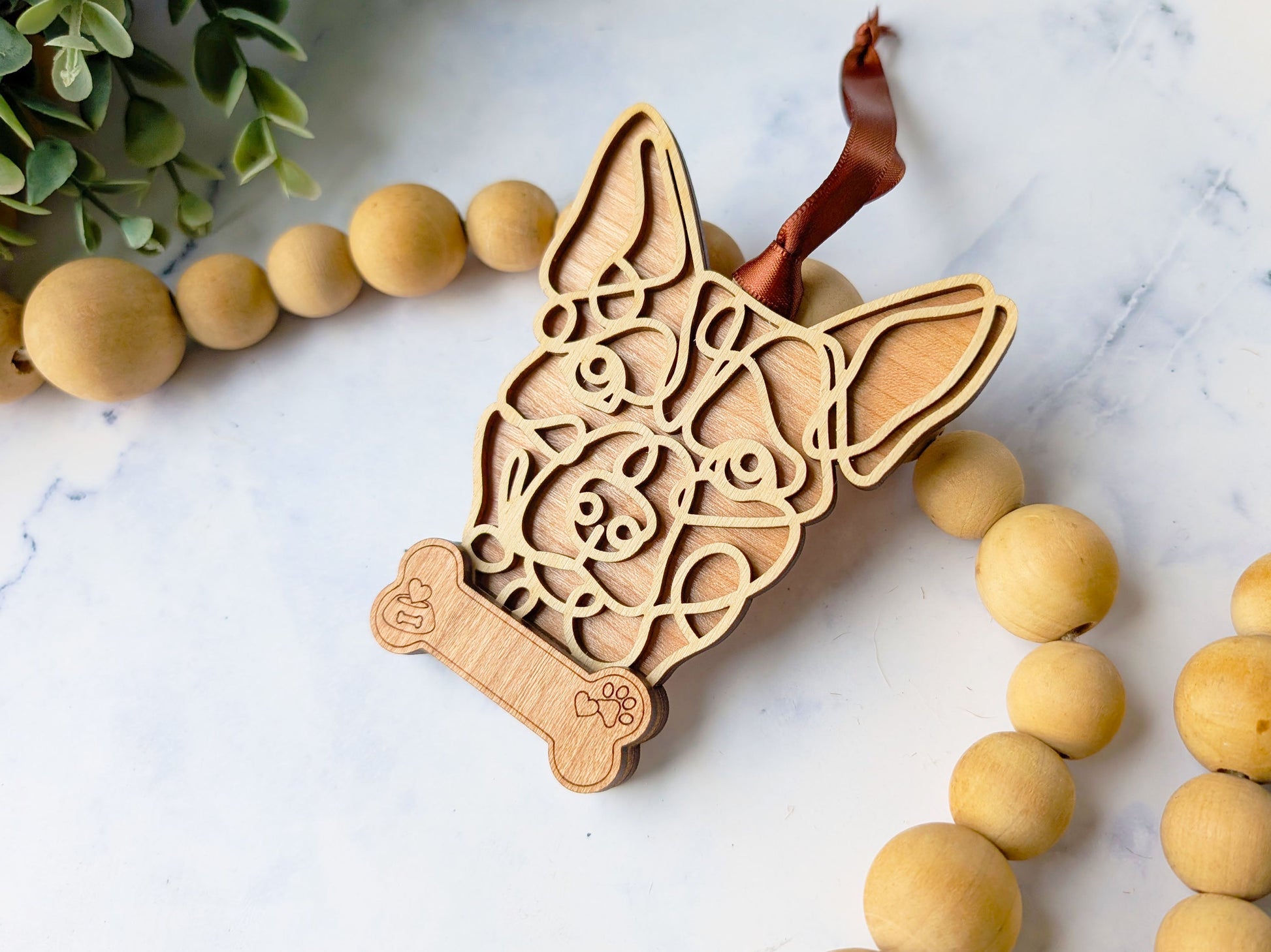 Celebrate your favorite furry friend with this handcrafted wooden dog ornament. Each piece features an intricately layered design that captures your pup’s personality in warm cherry and birch woods. Whether displayed year-round or hung proudly during the holidays, these keepsakes make a heartfelt gift for pet lovers and proud dog parents alike.