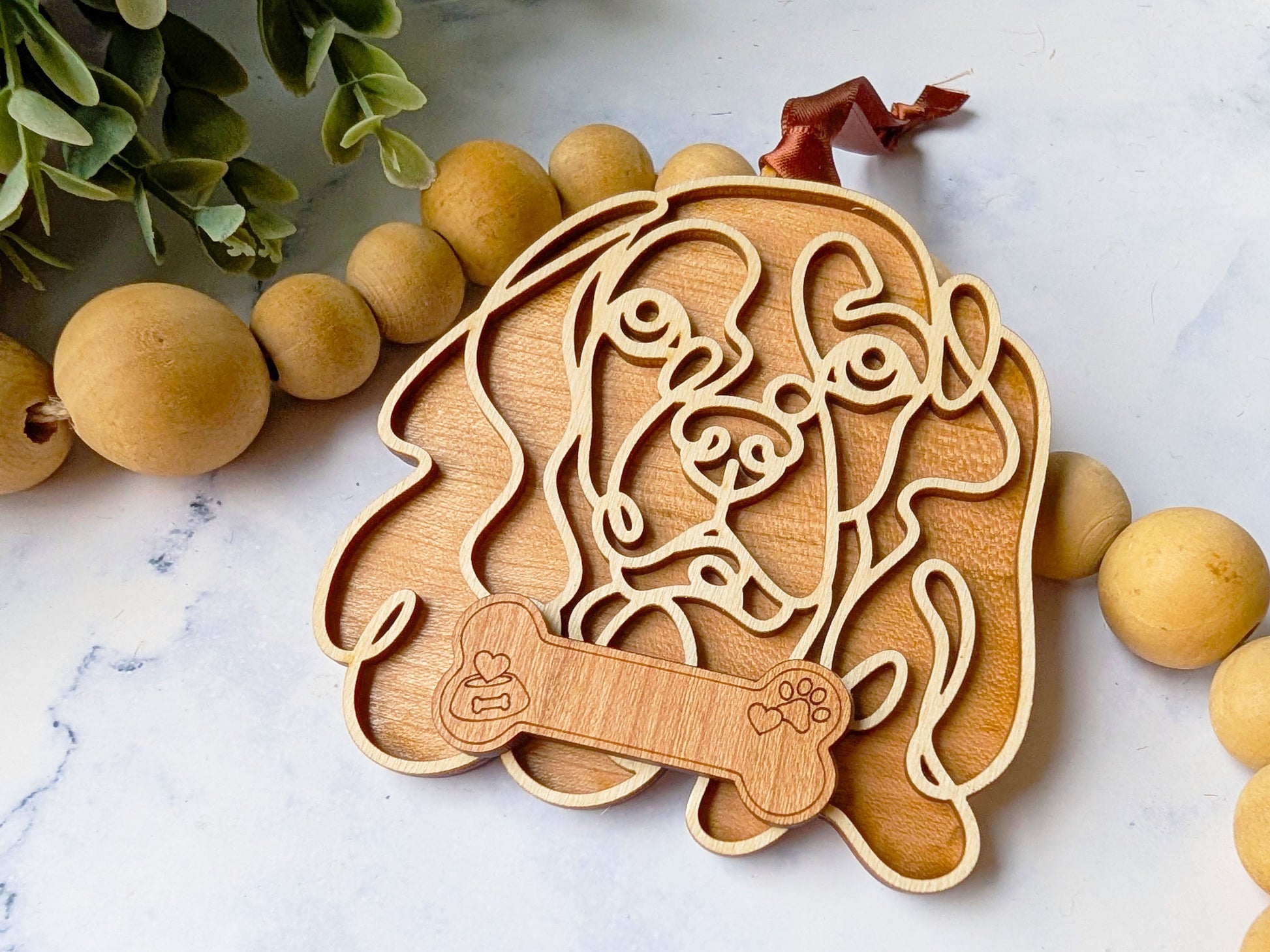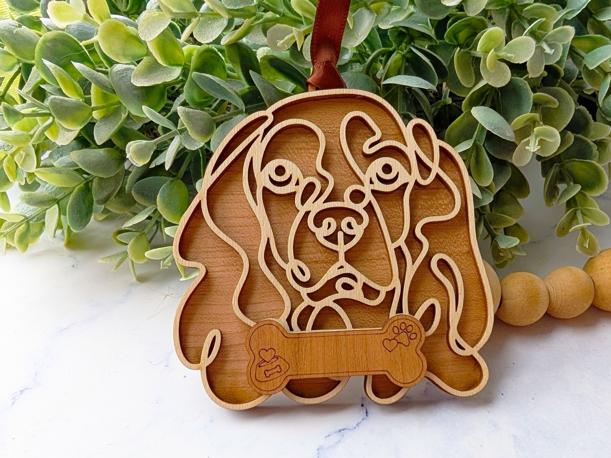 Celebrate your favorite furry friend with this handcrafted wooden dog ornament. Each piece features an intricately layered design that captures your pup’s personality in warm cherry and birch woods. Whether displayed year-round or hung proudly during the holidays, these keepsakes make a heartfelt gift for pet lovers and proud dog parents alike.