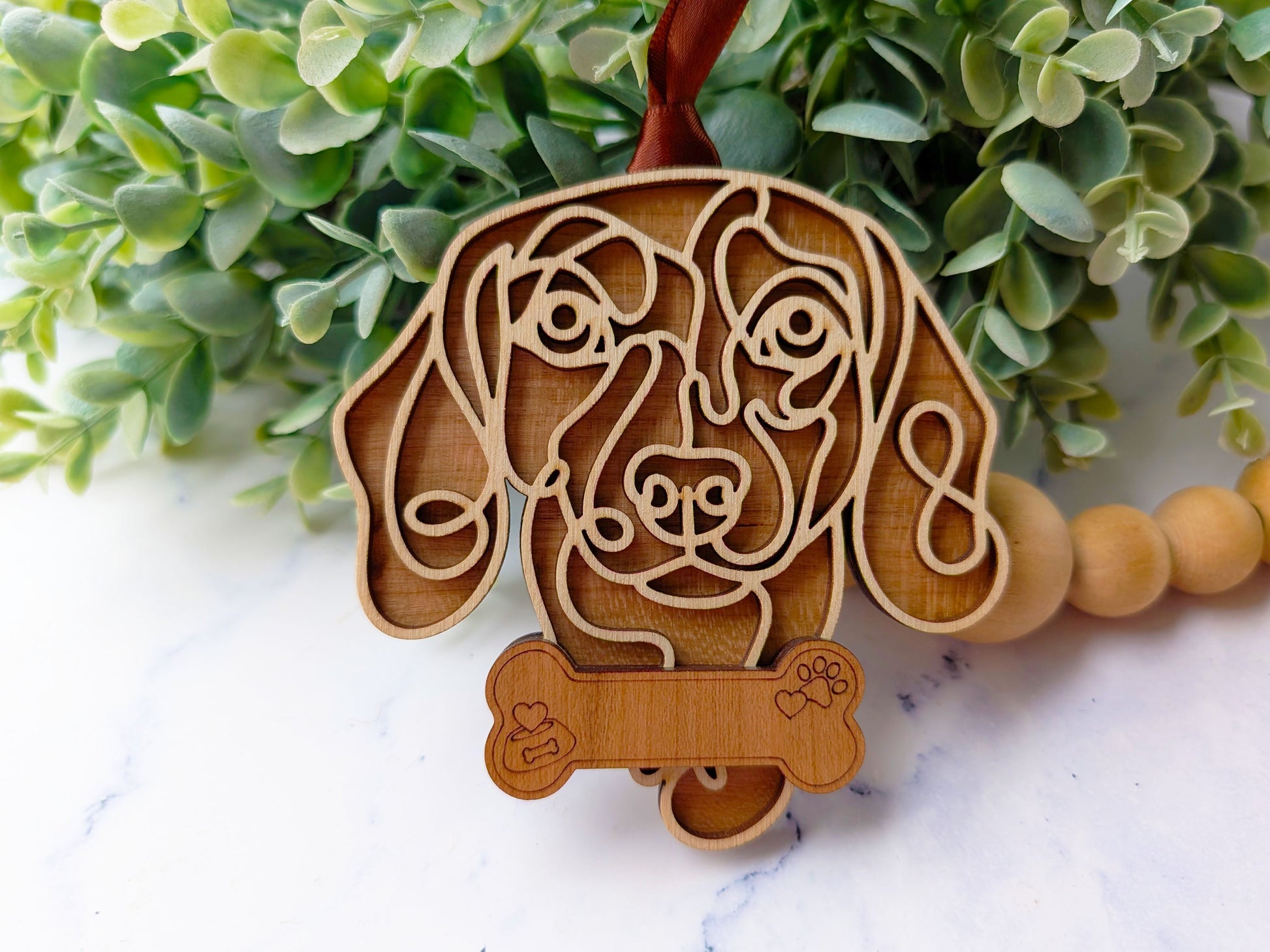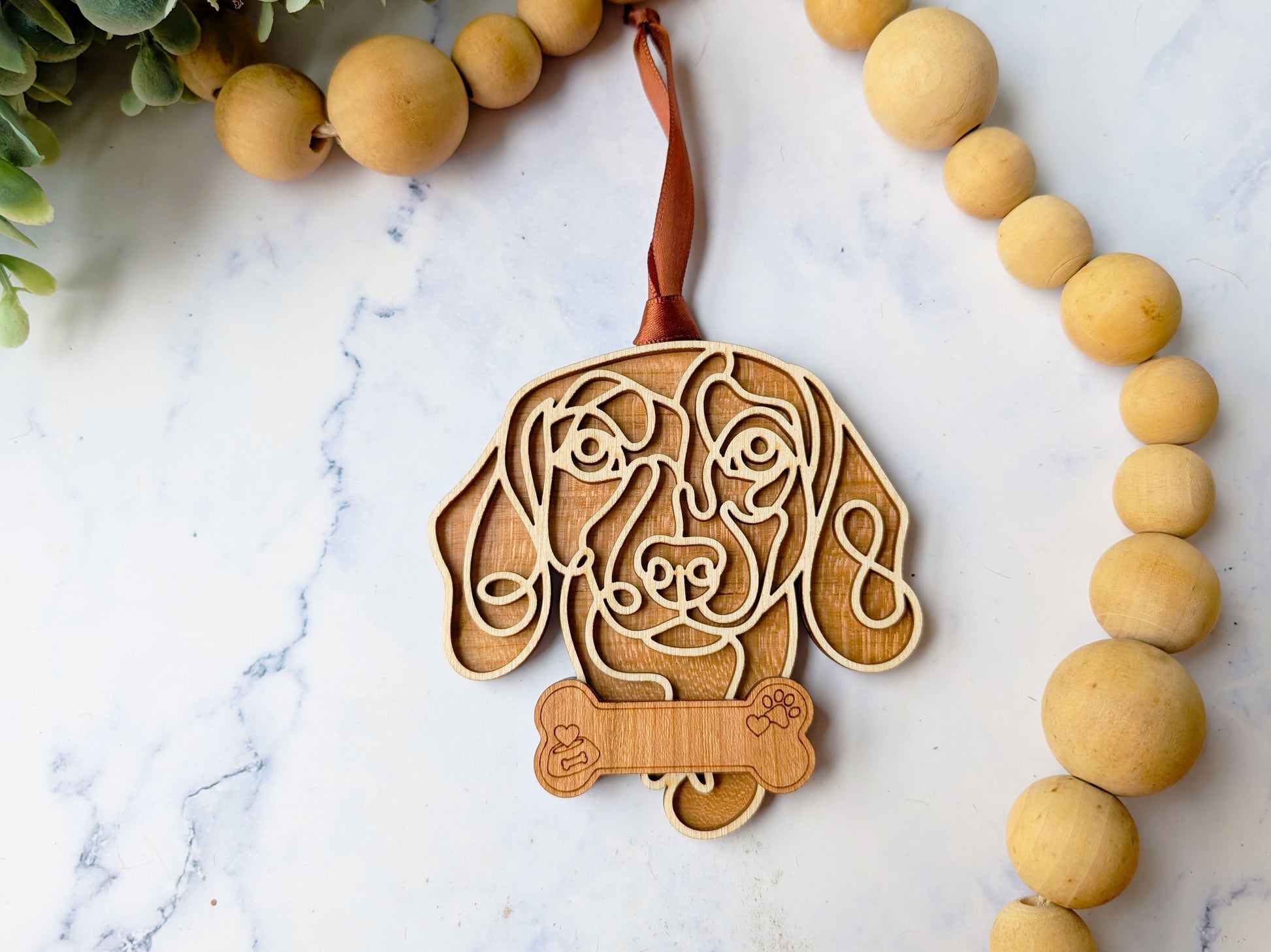 Celebrate your favorite furry friend with this handcrafted wooden dog ornament. Each piece features an intricately layered design that captures your pup’s personality in warm cherry and birch woods. Whether displayed year-round or hung proudly during the holidays, these keepsakes make a heartfelt gift for pet lovers and proud dog parents alike.
