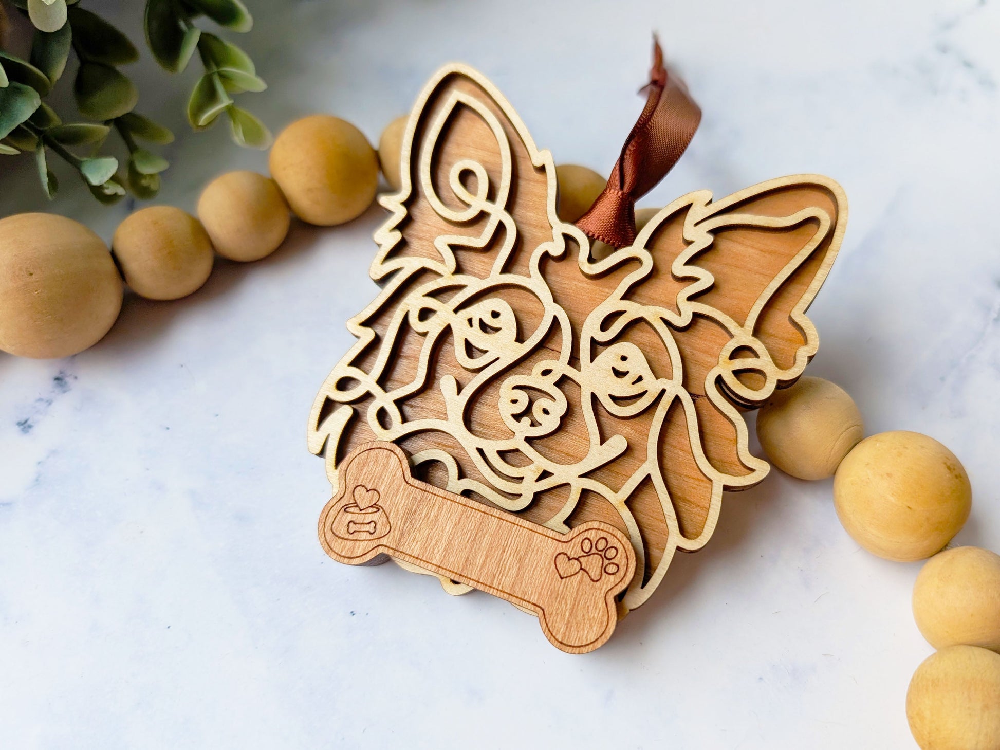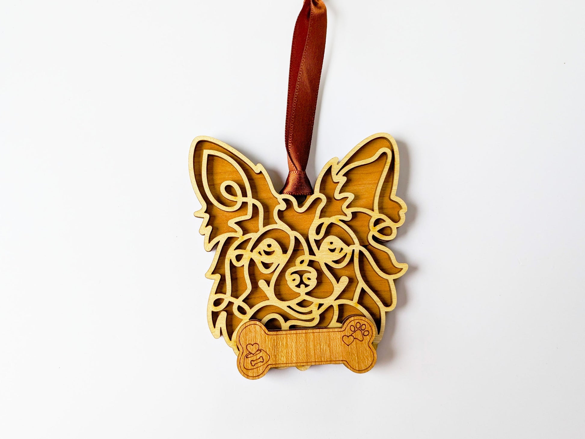 Celebrate your favorite furry friend with this handcrafted wooden dog ornament. Each piece features an intricately layered design that captures your pup’s personality in warm cherry and birch woods. Whether displayed year-round or hung proudly during the holidays, these keepsakes make a heartfelt gift for pet lovers and proud dog parents alike.