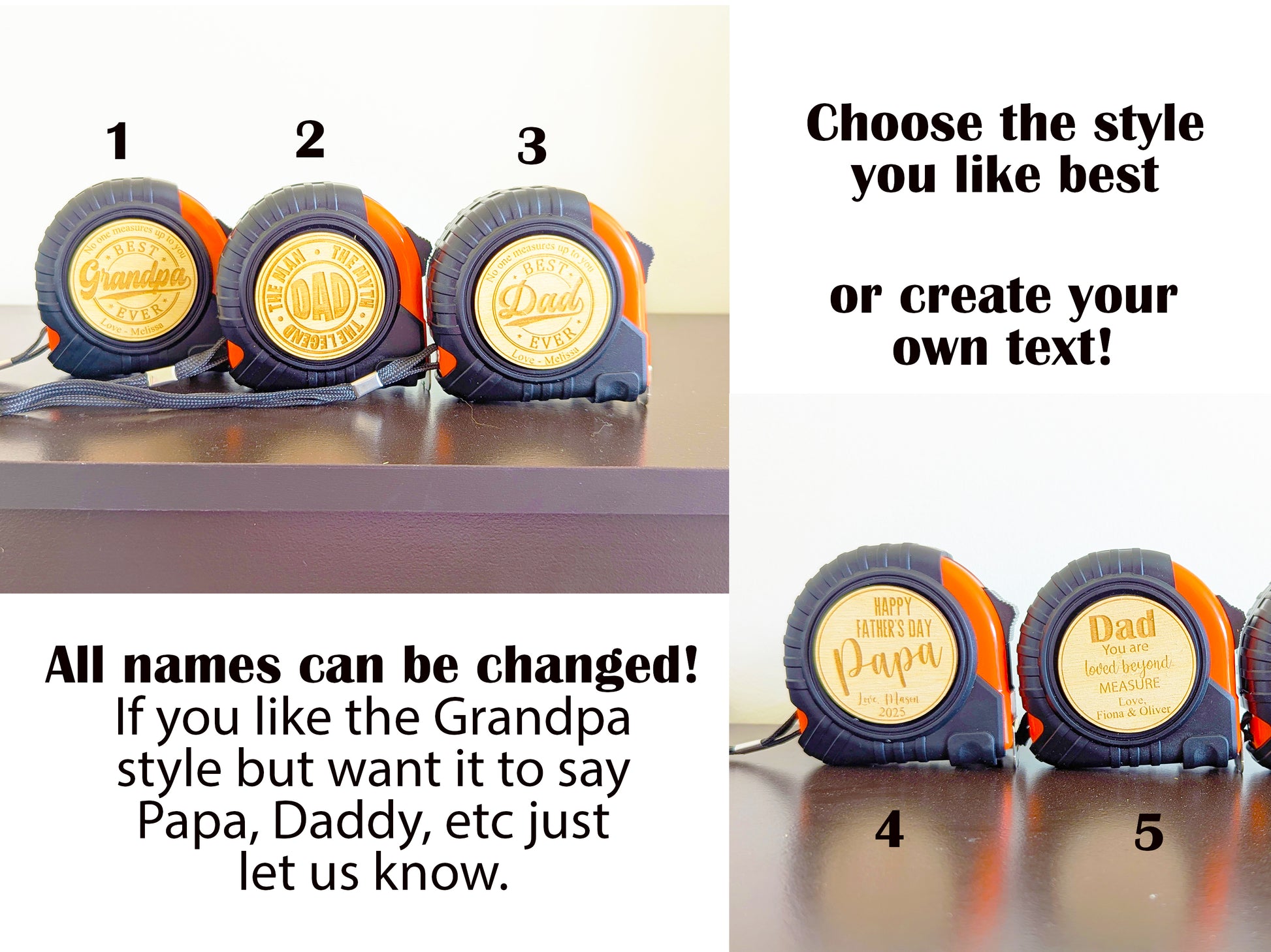 Beyond our standard options, we can craft your engraved tape measure for almost any occasion or sentiment, making it a versatile custom tool gift: