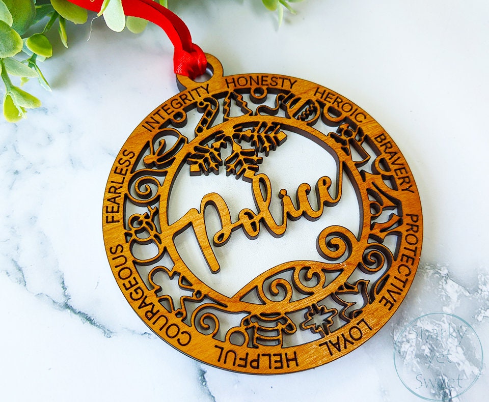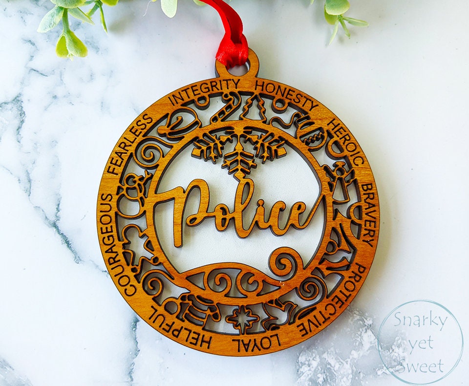 Police layered ornament, police ornament, police officer ornament, personalized ornament, unique wood ornament, laser cut ornament