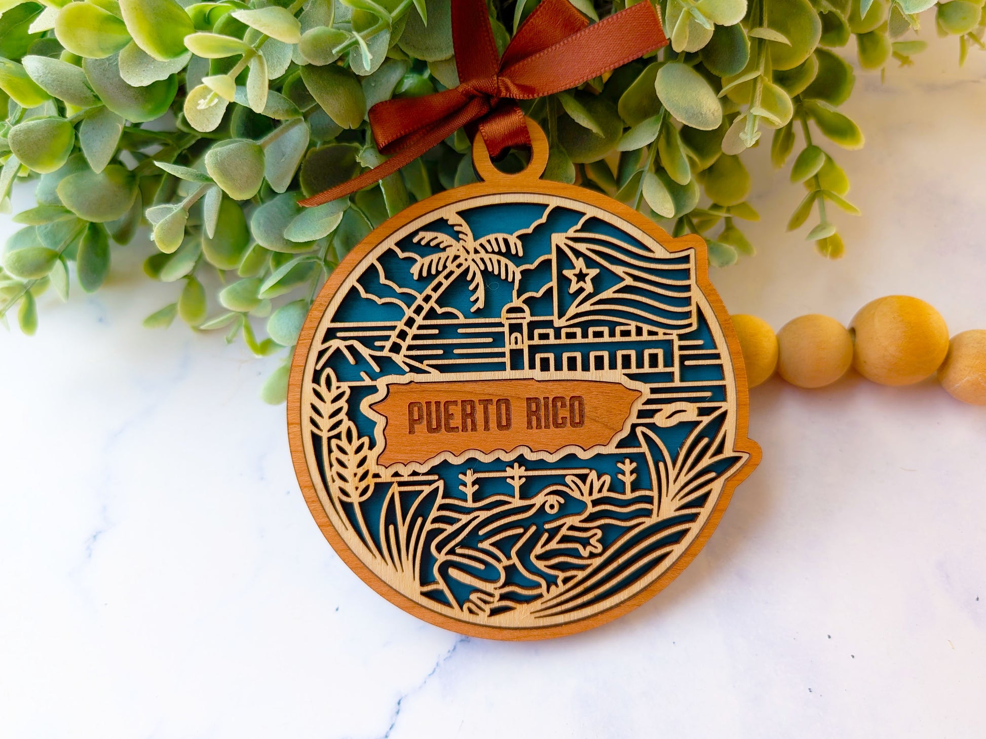 Celebrate Puerto Rico's heritage with this stunning handcrafted wooden ornament. Each piece features intricate details capturing the state's culture, history, and topography . These premium keepsakes transform cherished travel memories into beautiful display pieces that are perfect to display or gift.