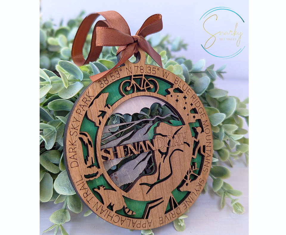 Relive your favorite trip to Shenandoah National Park with this beautiful handmade wood ornament. Ornaments are hand painted with details from the park and a gorgeous laser cut and engraved cherry wood that features many icons specific to Shenandoah and words and phrases for that park. These ornaments are great reminders of your favorite family vacation or hiking adventure and make great gifts for the avid hiker or adventurer in your life.