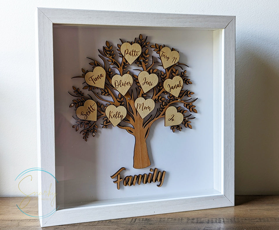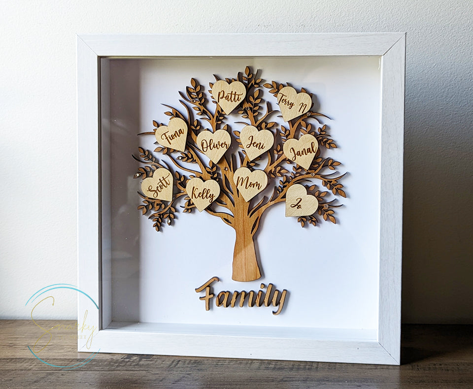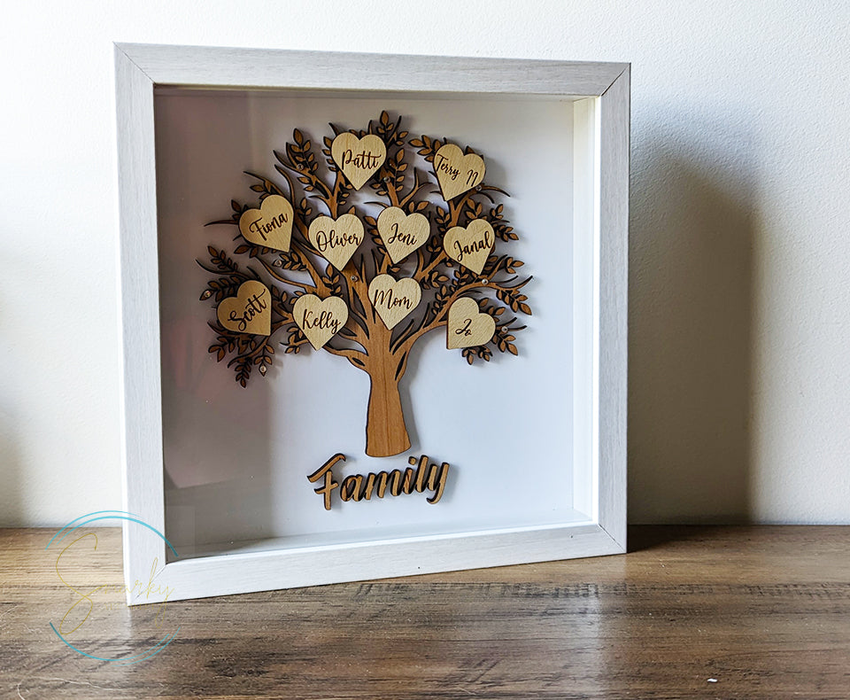 Shadow box family tree, wood family tree, family tree sign, family tree gift, gift for mom, gift for grandma, mothers day gift