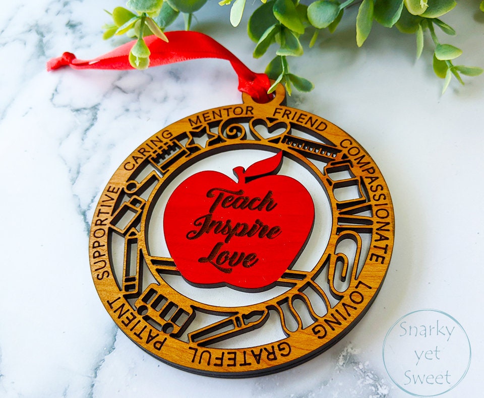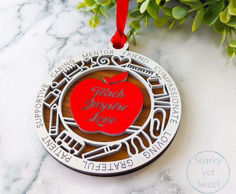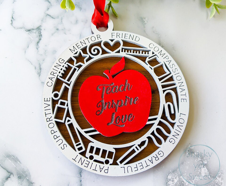 Teacher layered ornament, teacher ornament, teach love inspire ornament, personalized ornament, unique wood ornament, gift for teacher