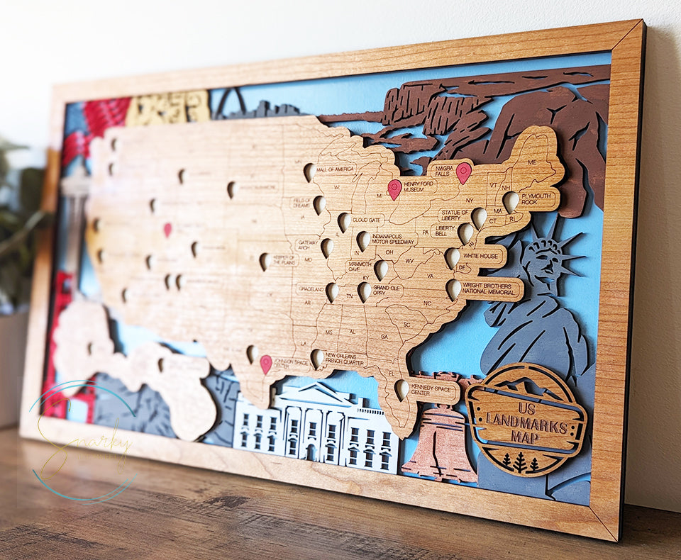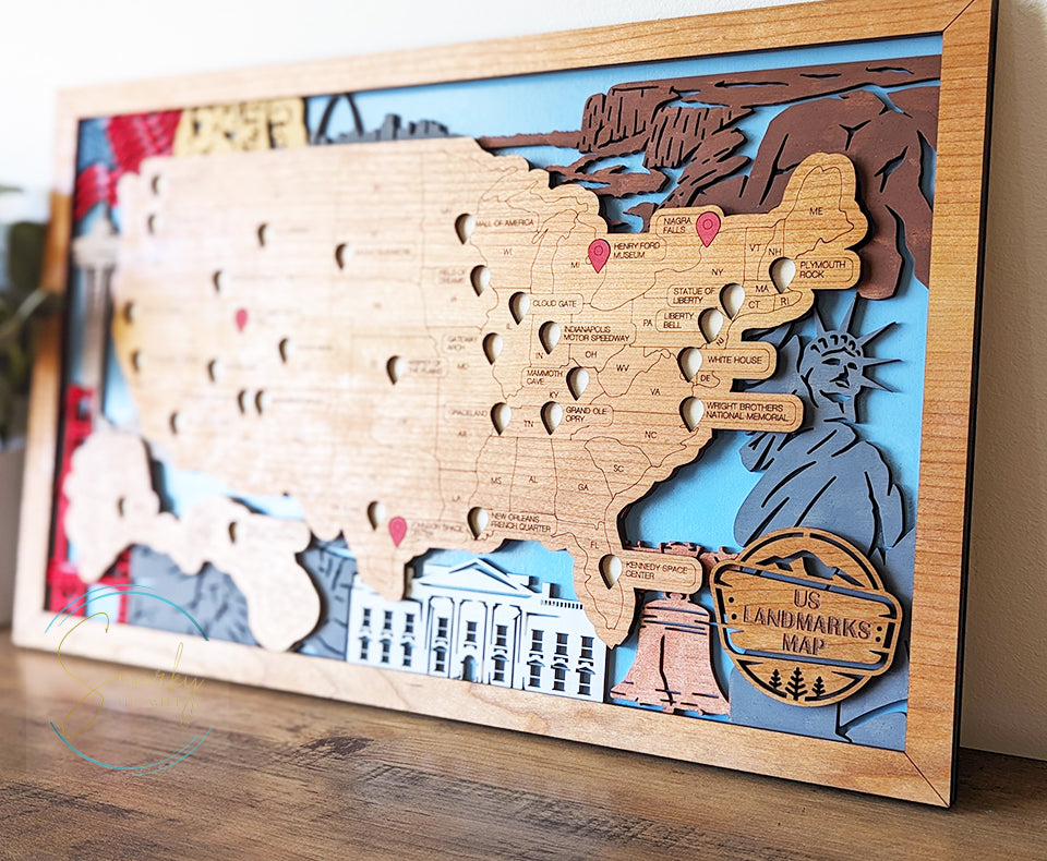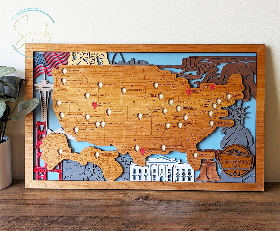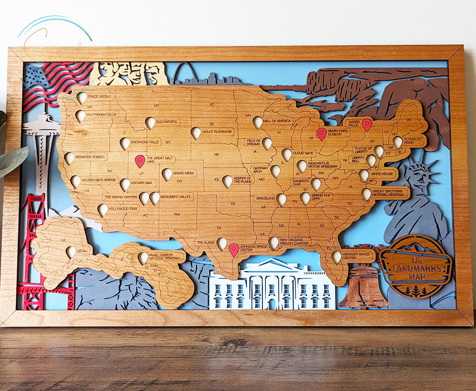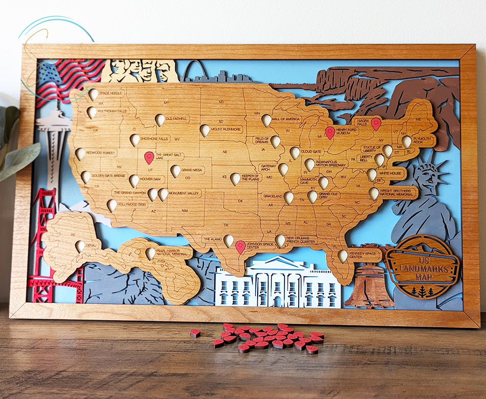 US Landmarks Map, Landmarks bucket list, travel bucket list, travel tracker, gift for hikers, gift for traveler, gift for family vacation