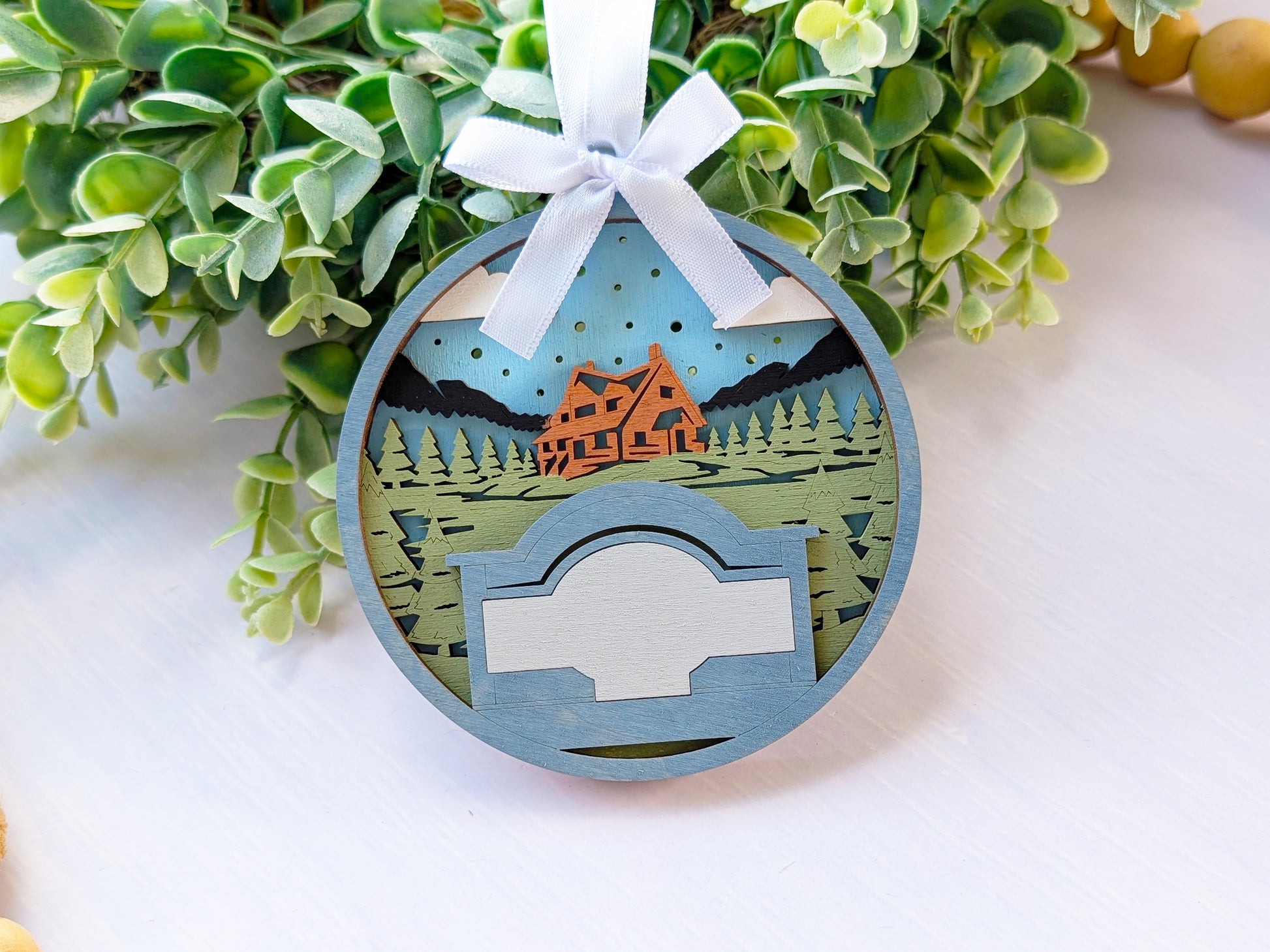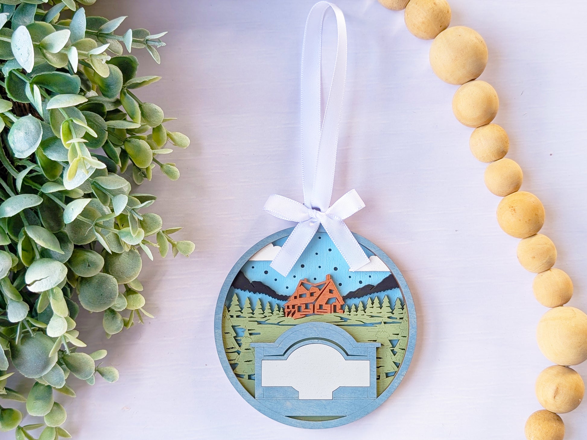Create the perfect location-specific souvenir with this customizable handcrafted wooden ornament. Each piece features hand-painted mountain lodge scenes with timber architecture and alpine settings, complete with a personalized text banner that can display your shop name, location, or custom message. These versatile ornaments connect customers to their lodge stay memories while promoting your brand, making them ideal for gift shops, visitor centers, and tourist destinations nationwide.