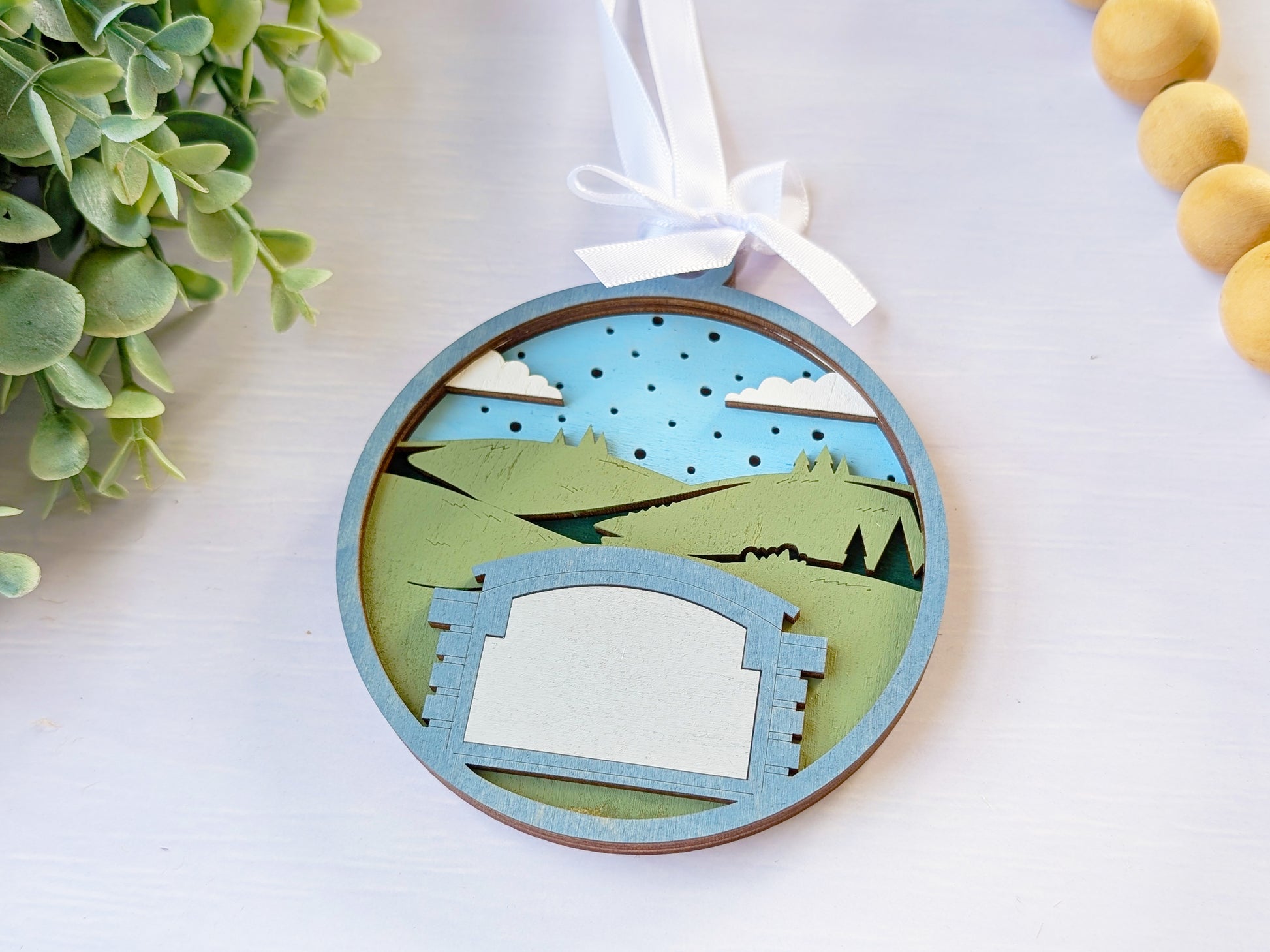 Create the perfect location-specific souvenir with this customizable handcrafted wooden ornament. Each piece features hand-painted rolling hills with pastoral landscapes and scenic vistas, complete with a personalized text banner that can display your shop name, location, or custom message. These versatile ornaments connect customers to their countryside memories while promoting your brand, making them ideal for gift shops, visitor centers, and tourist destinations nationwide.