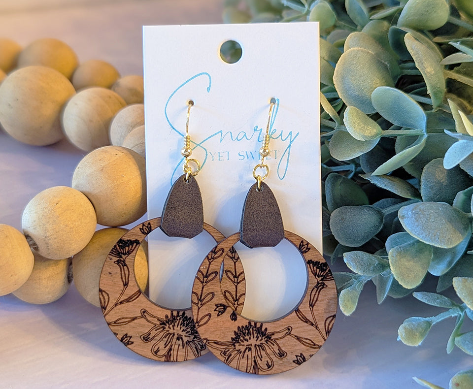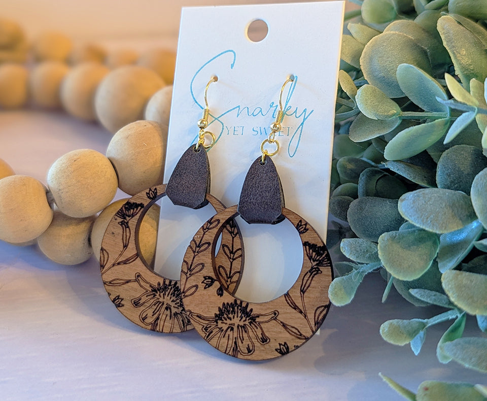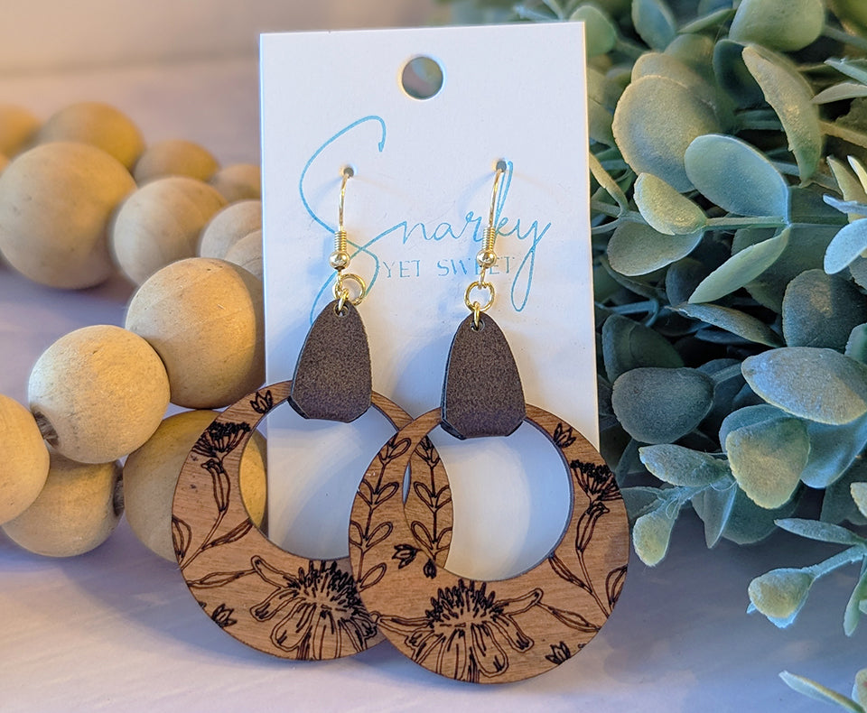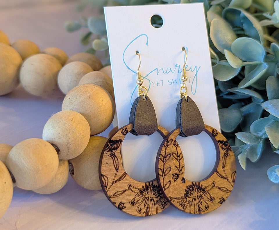 Wood earrings, floral earring, Spring earrings, acrylic earrings, engraved earrings, lightweight earrings, everyday earring, gift for her